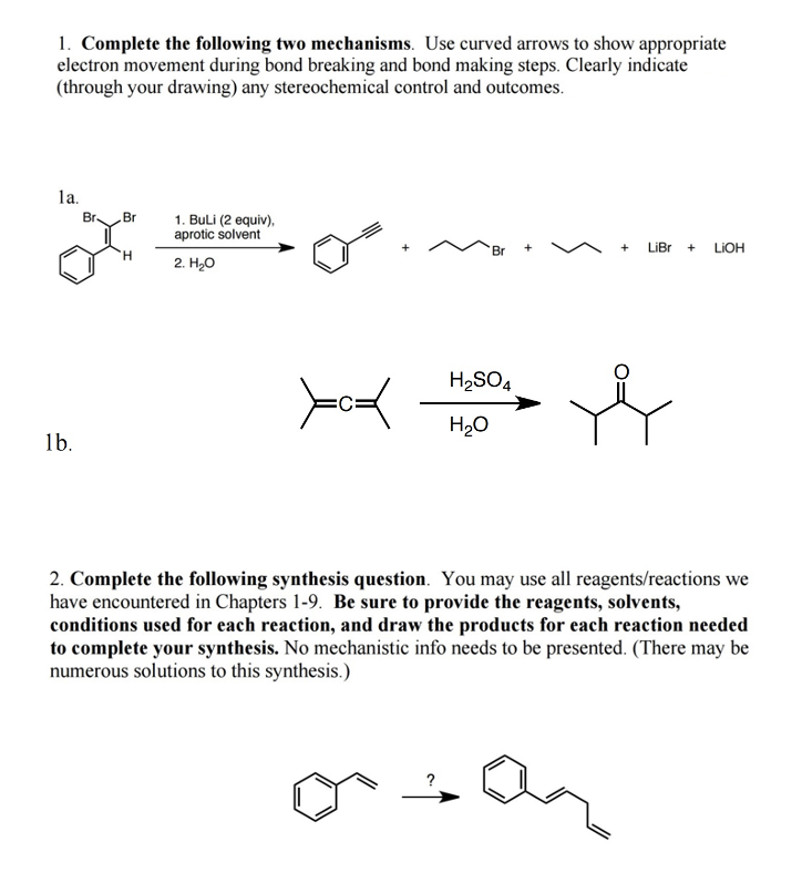 1. Complete the following two mechanisms Use curved arrows to show...