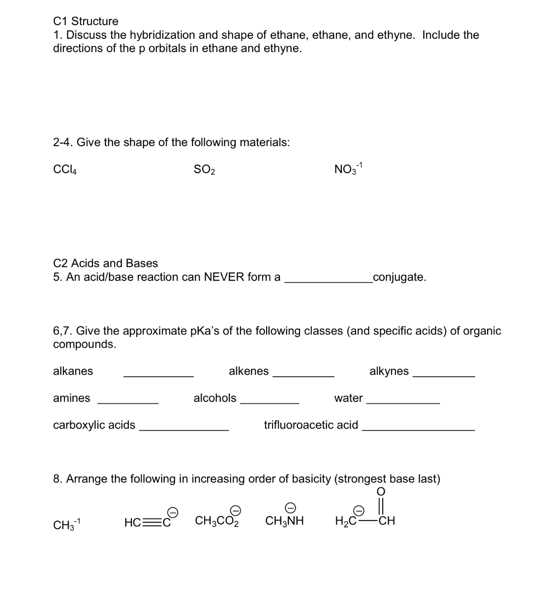 C1 Structure 1. Discuss the hybridization and shape of ethane, eth...