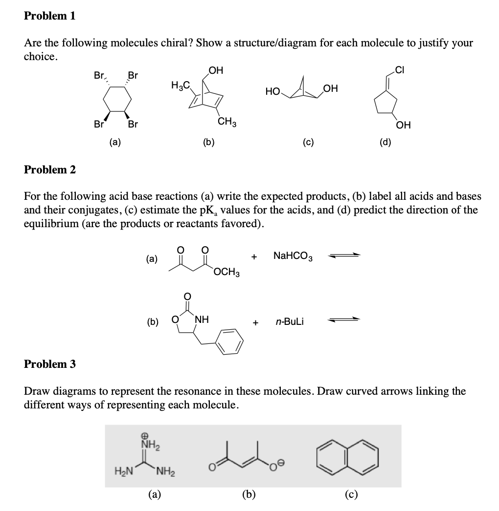 Problem 1 Are the following molecules chiral? Show a structure/dia...