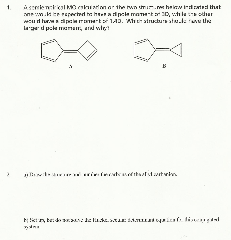 1. A semiempirical MO calculation on the two structures below indi...