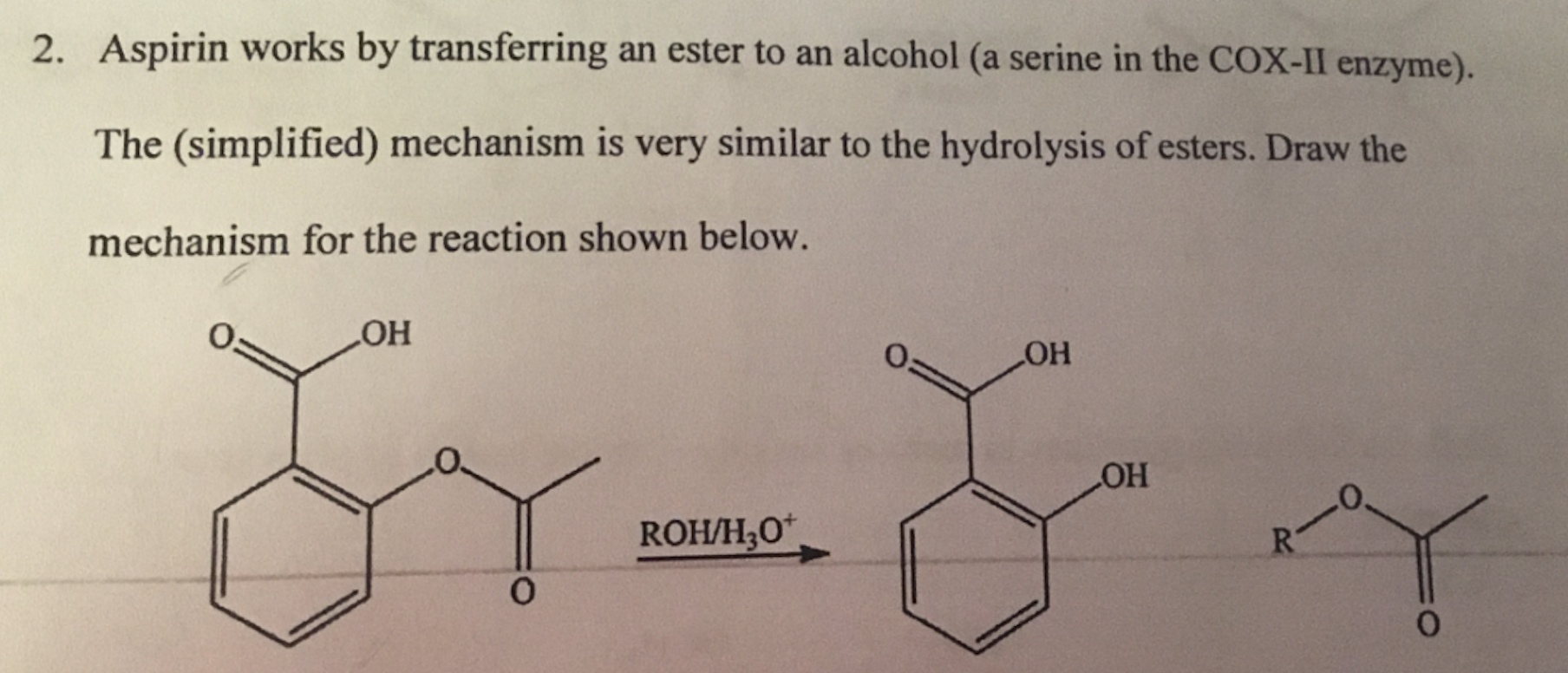 2. Aspirin works by transferring an ester to an alcohol (a serine i...