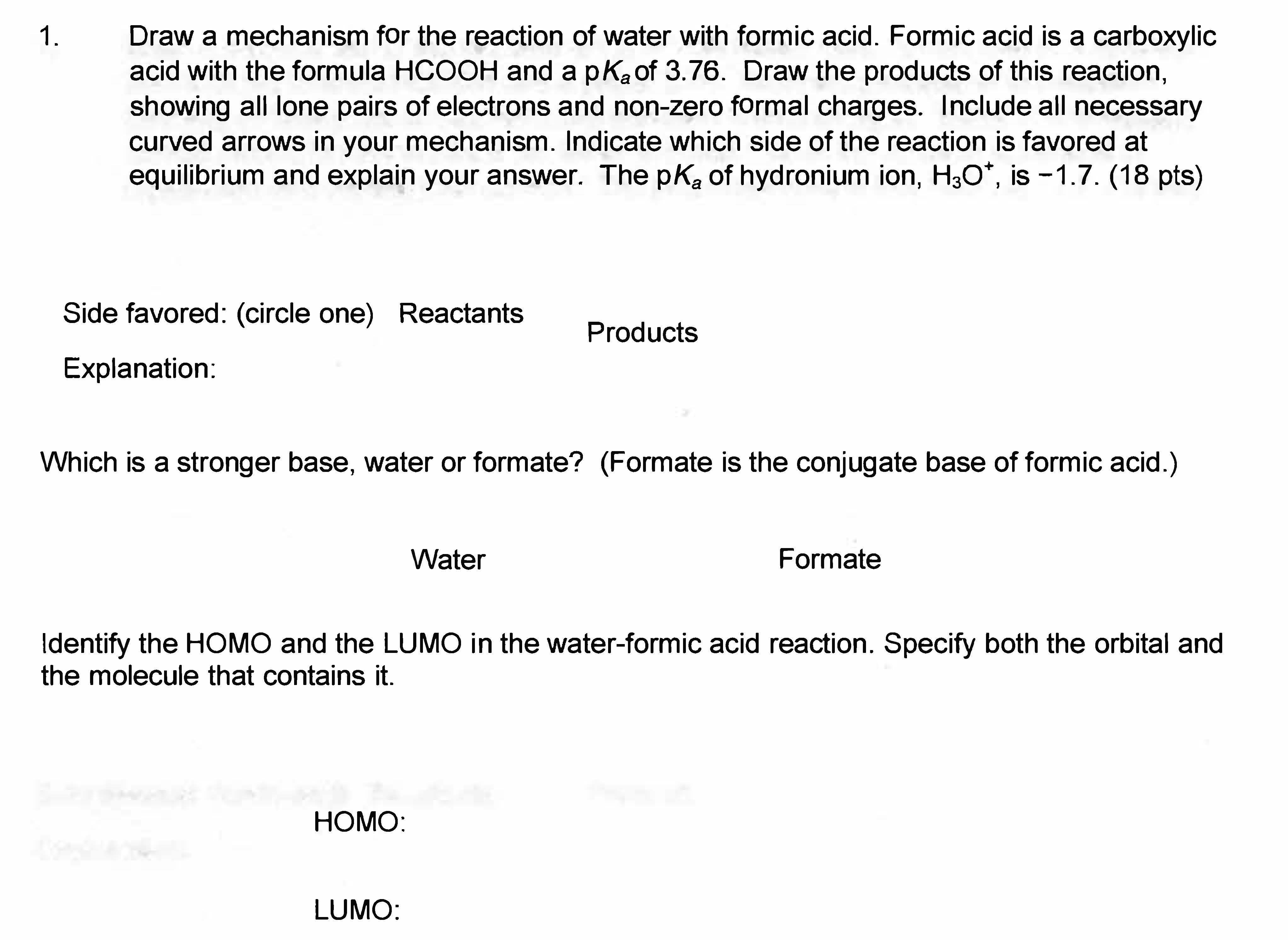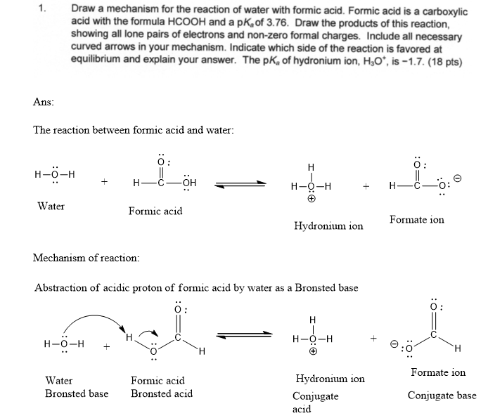 1. Draw a mechanism for the reaction of water with formic acid. Fo...