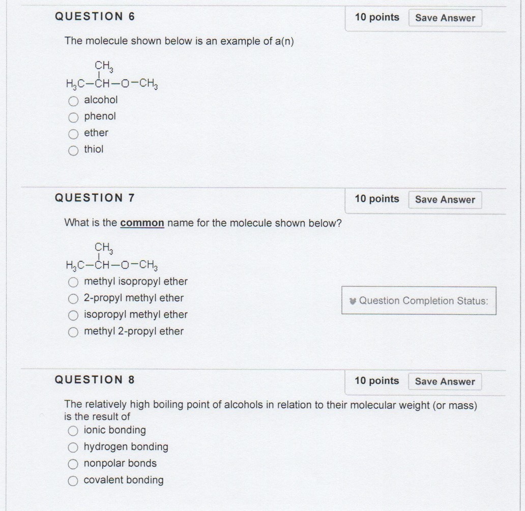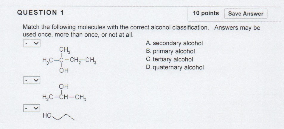 QUESTION 1 10 points Save Answer Match the following molecules w...