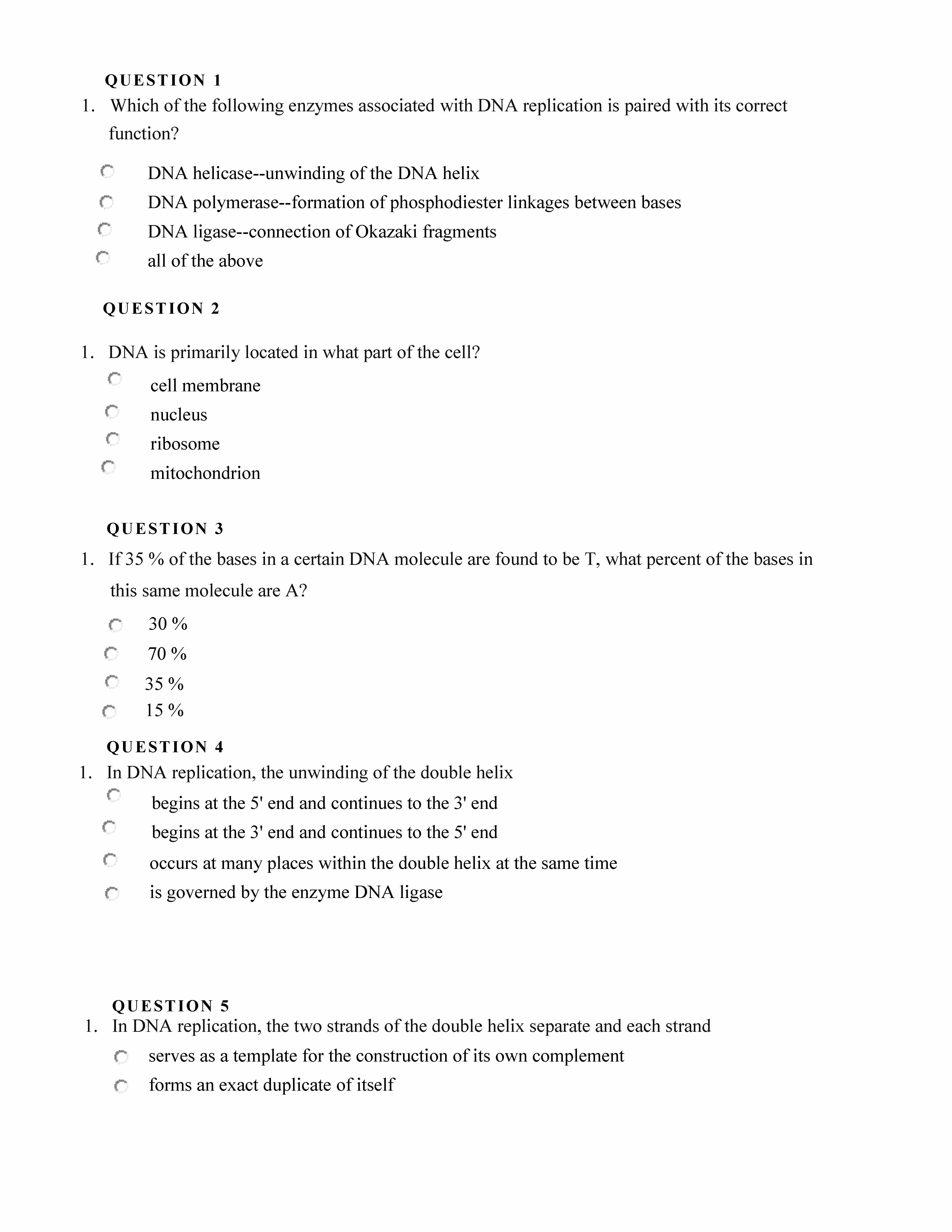 1. QUESTION 1 Which of the following enzymes associated with DNA ...