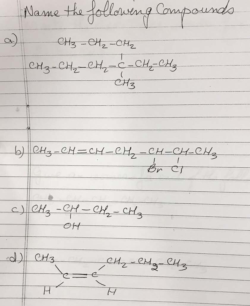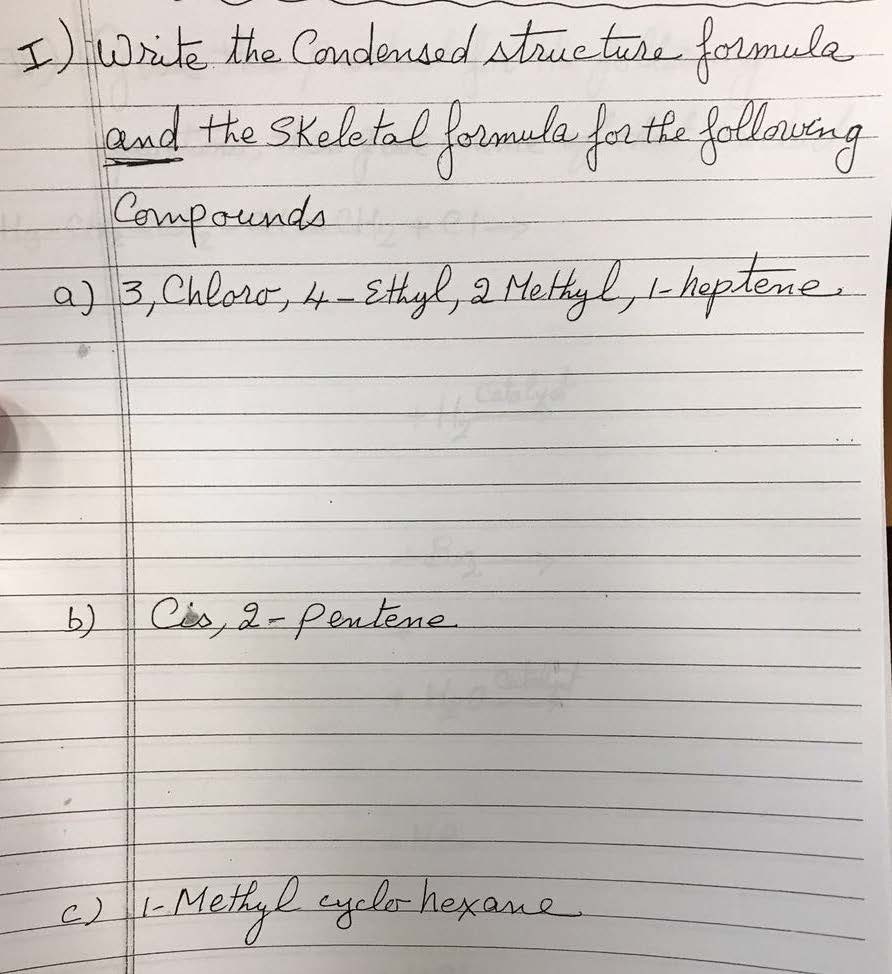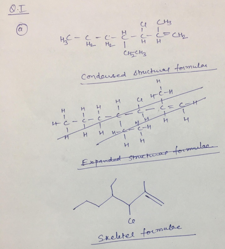 I) Write the Condensed structure formula and the Skeletal formula...