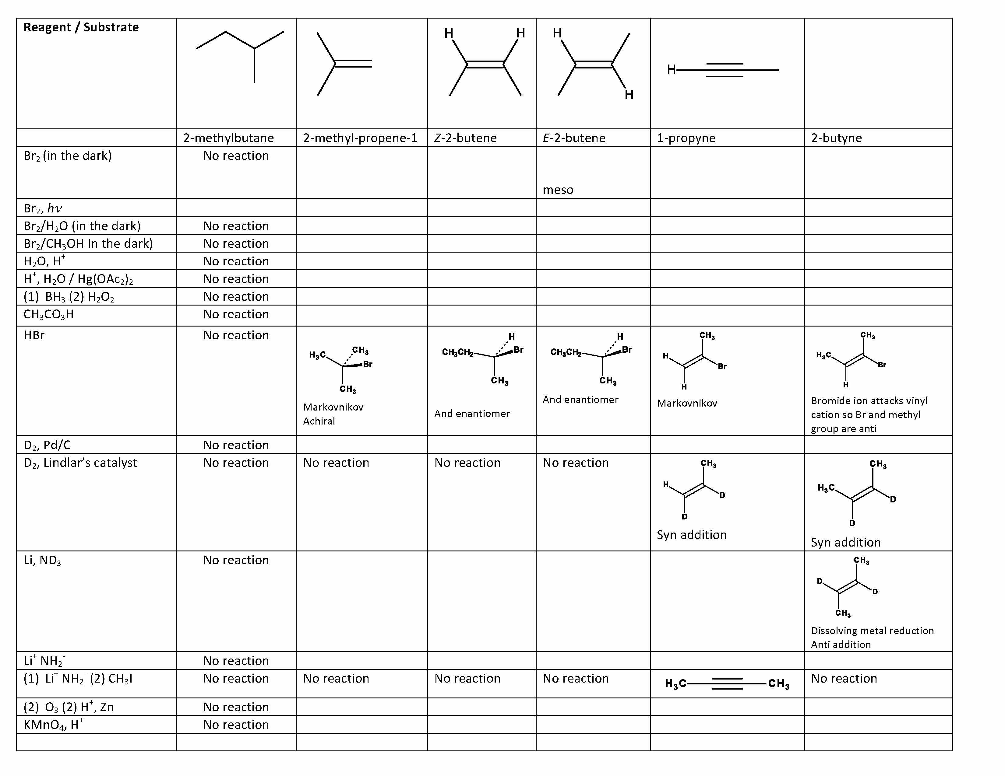 Reagent/Substrate H H H H H 2-methylbutane 2-methyl-propene-...
