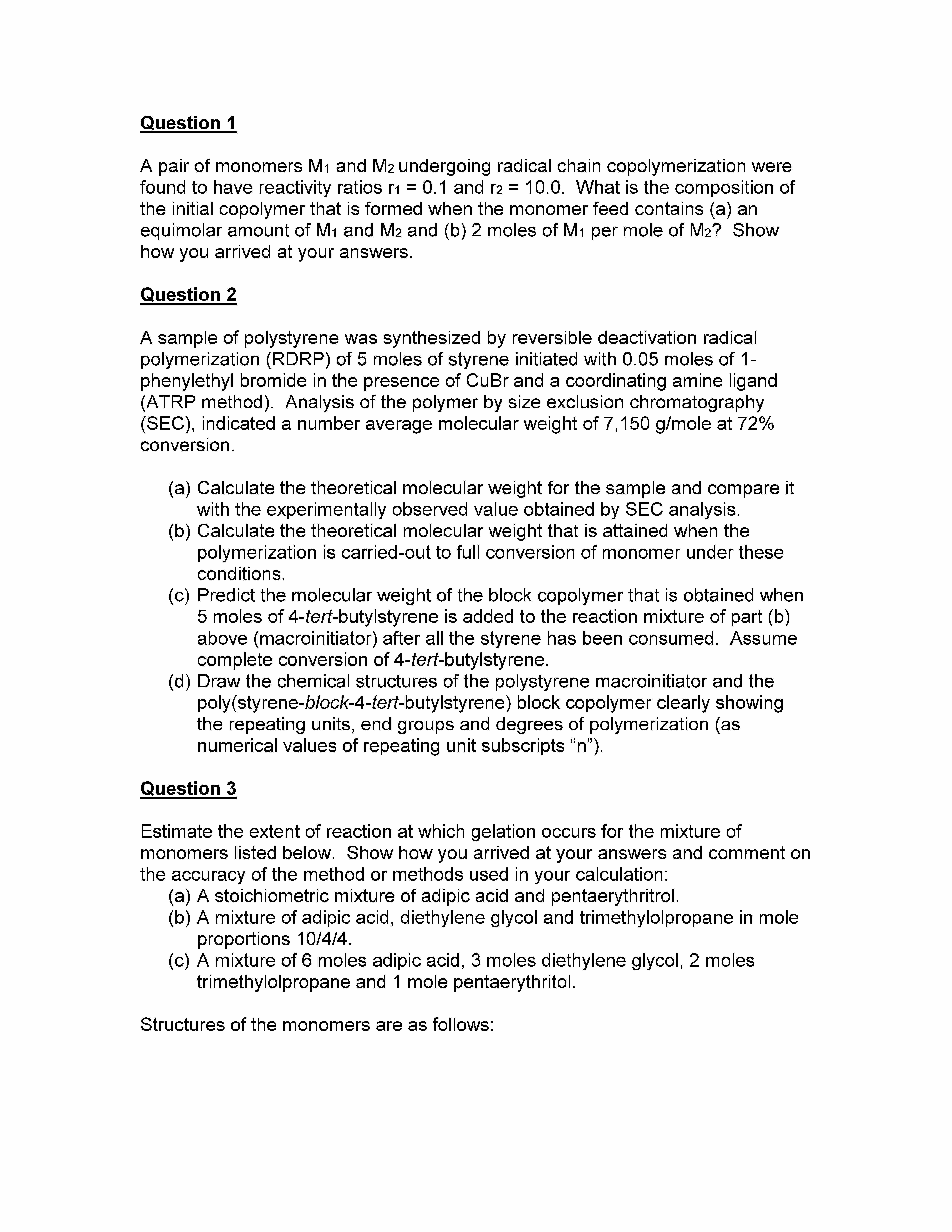 Question 1 A pair of monomers M1 and M2 undergoing radical chain c...
