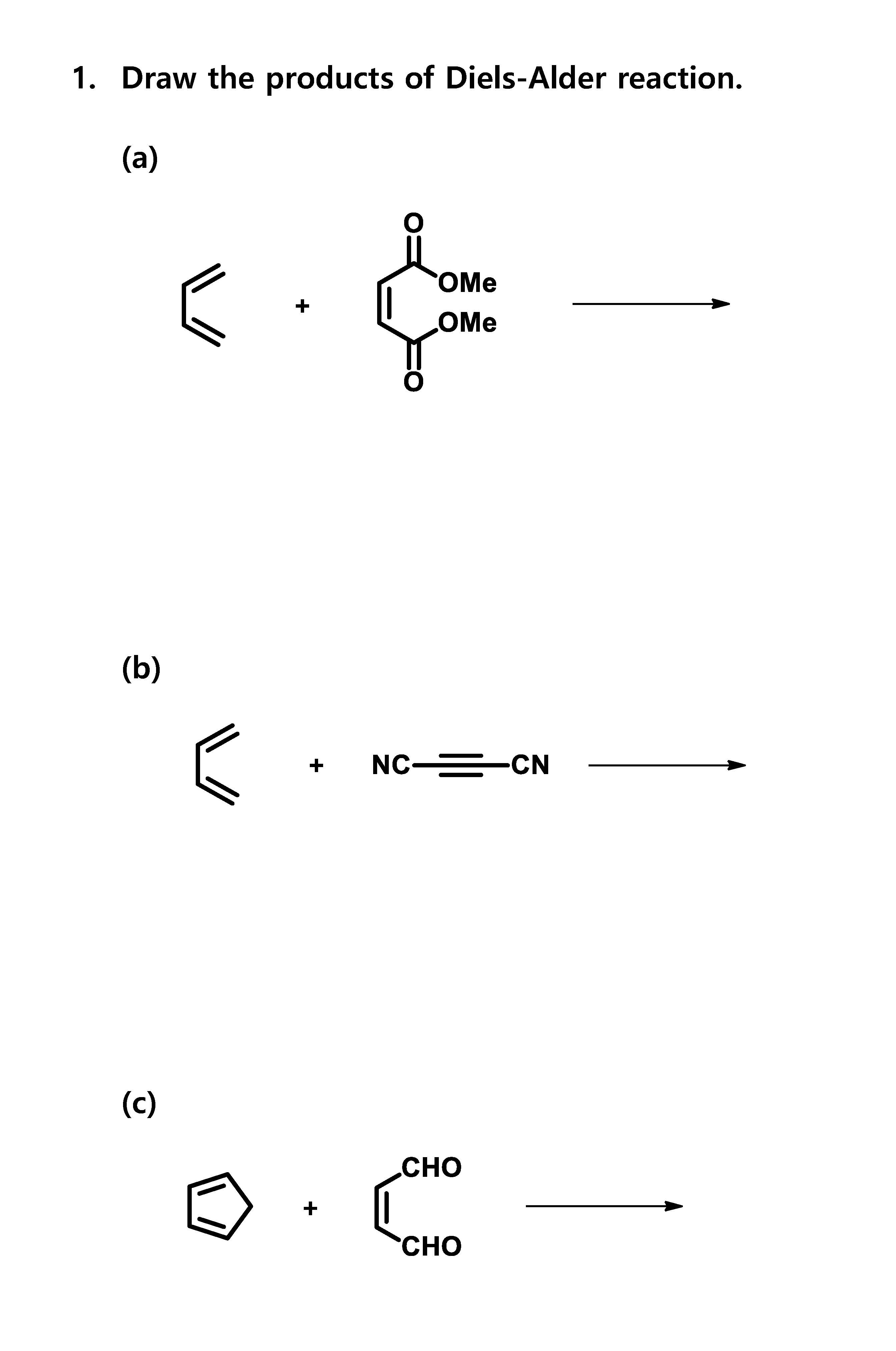 1. Draw the products of Diels-Alder reaction. (a) E "OMe ,...