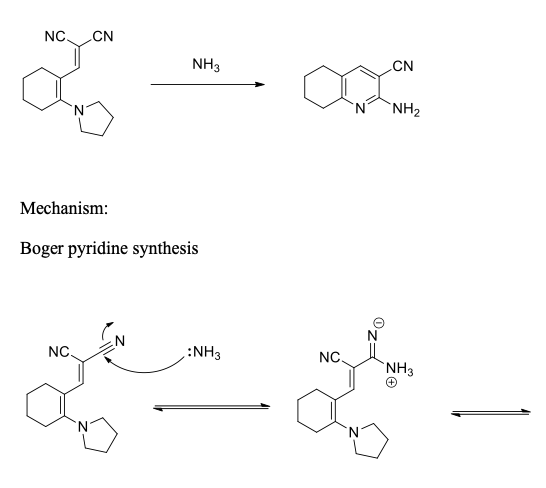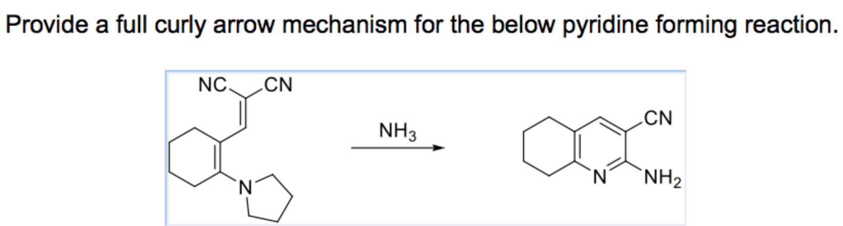 Provide a full curly arrow mechanism for the below pyridine forming...