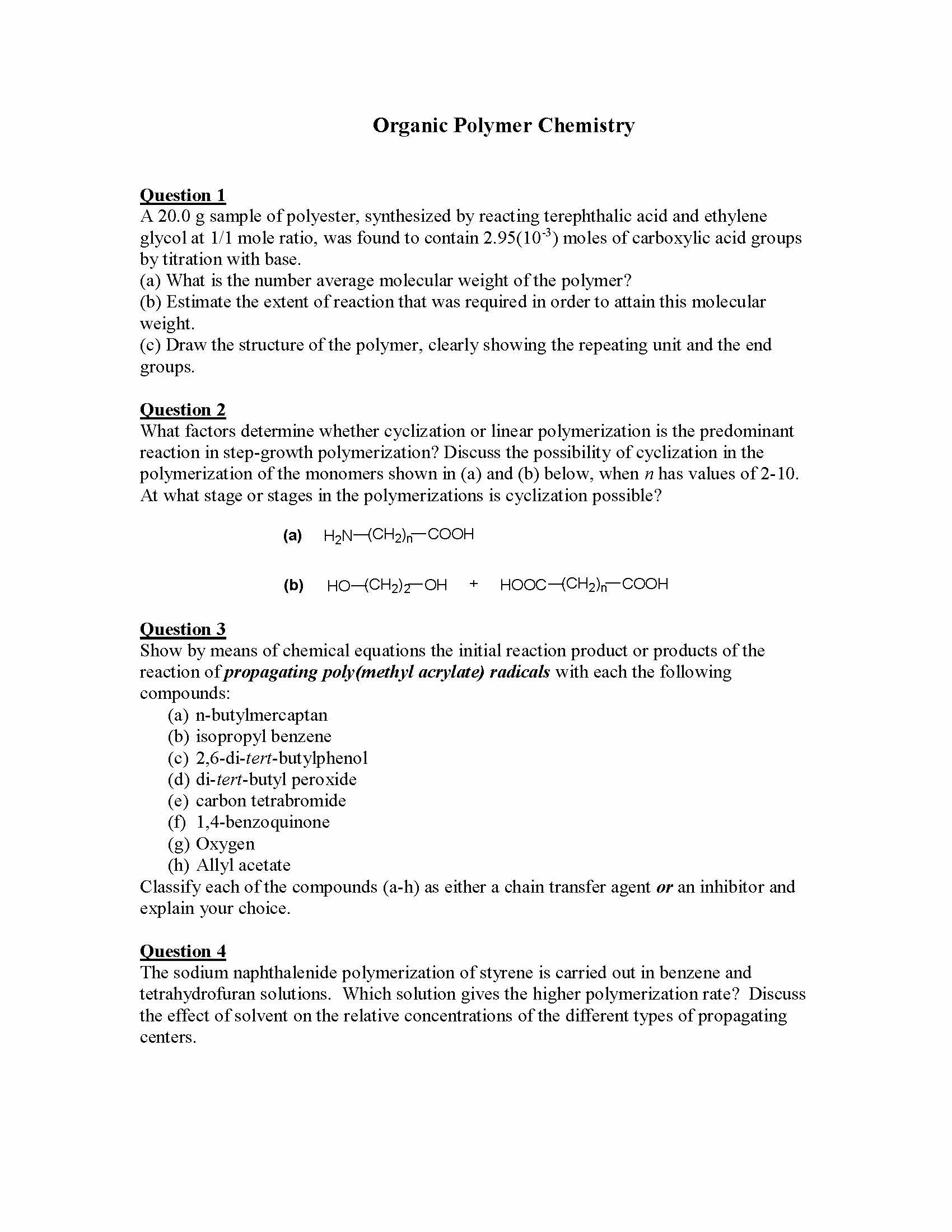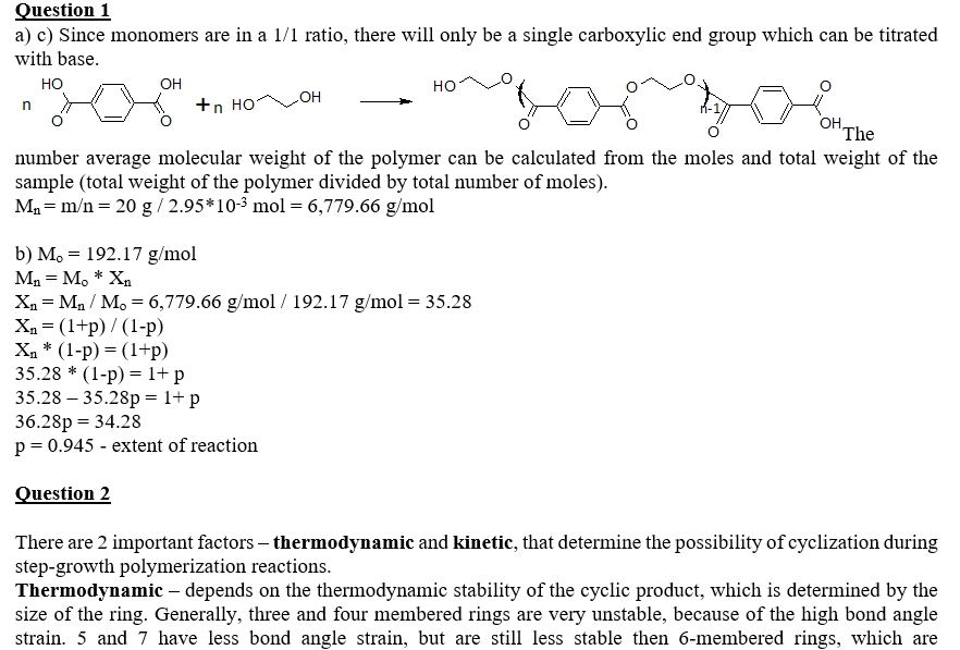 Organic Polymer Chemistry Question 1 A 20.0 sample of polyester, ...