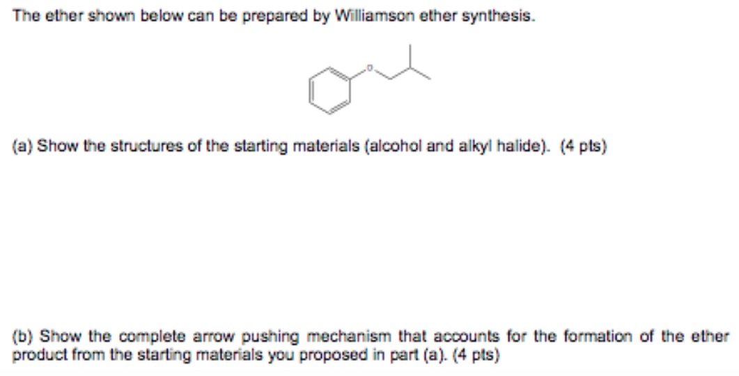 The ether shown below can be prepared by Williamson ether synthesis...