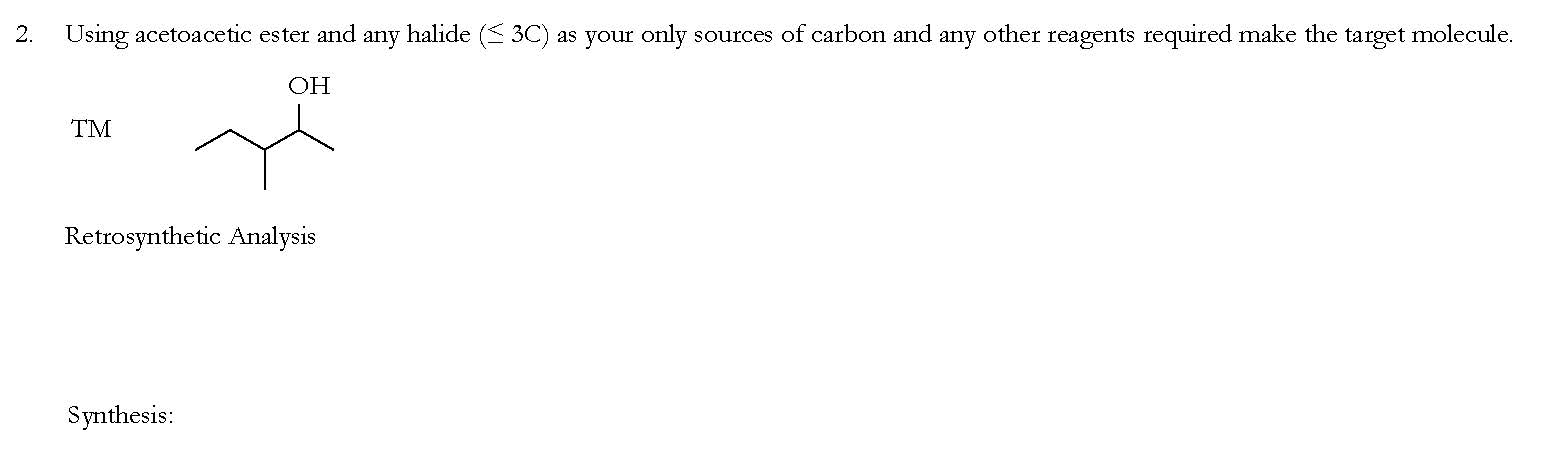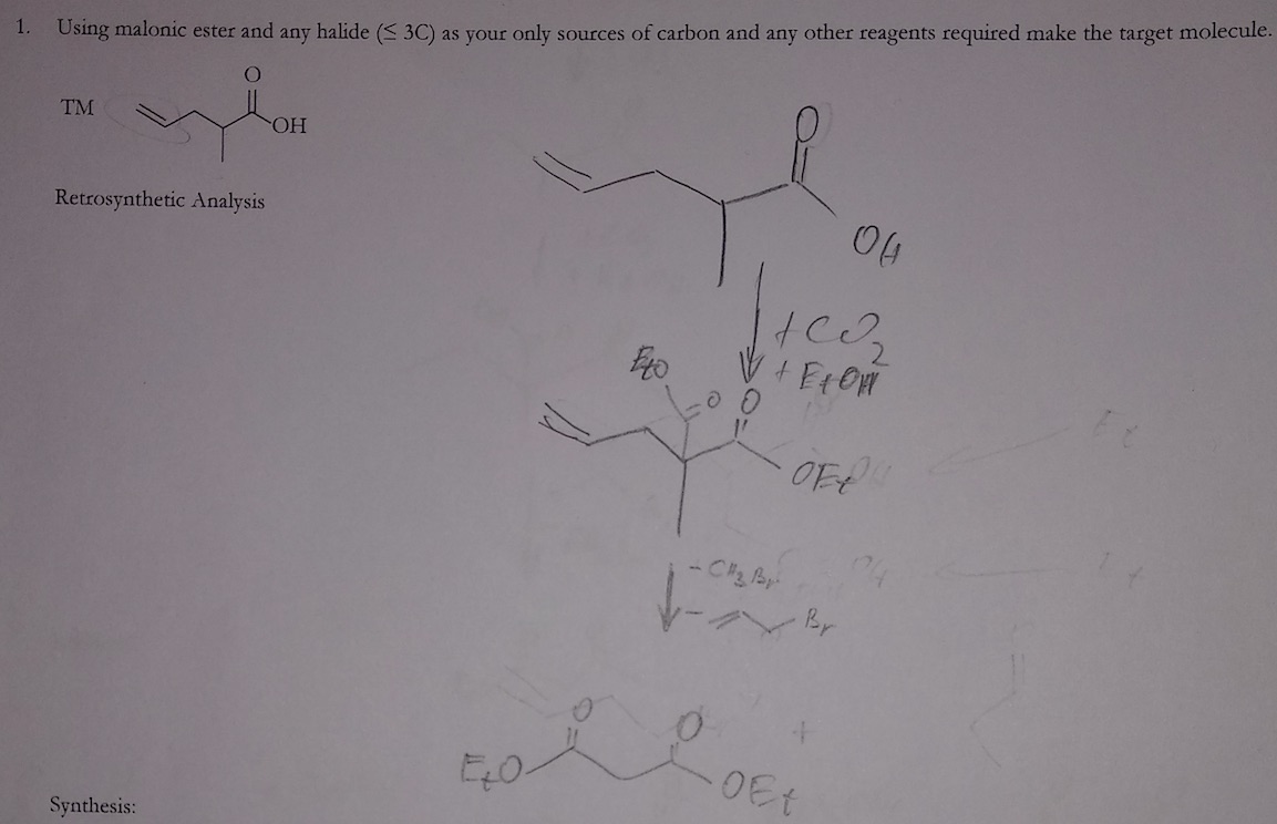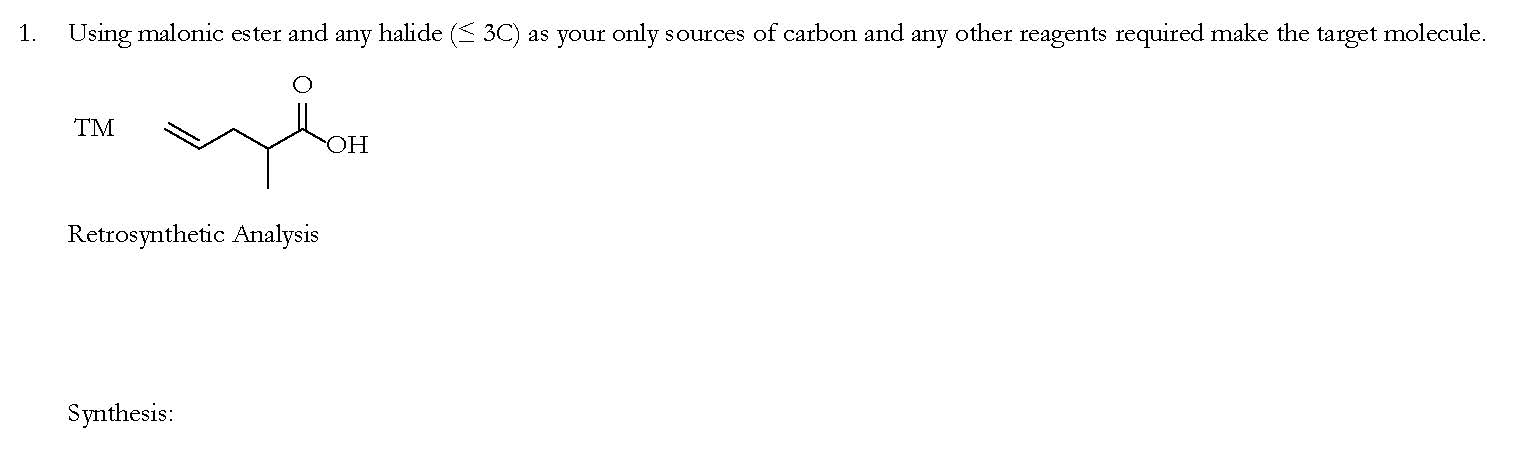 1.Using malonic ester and any halide (≤ 3C) as your only sour...