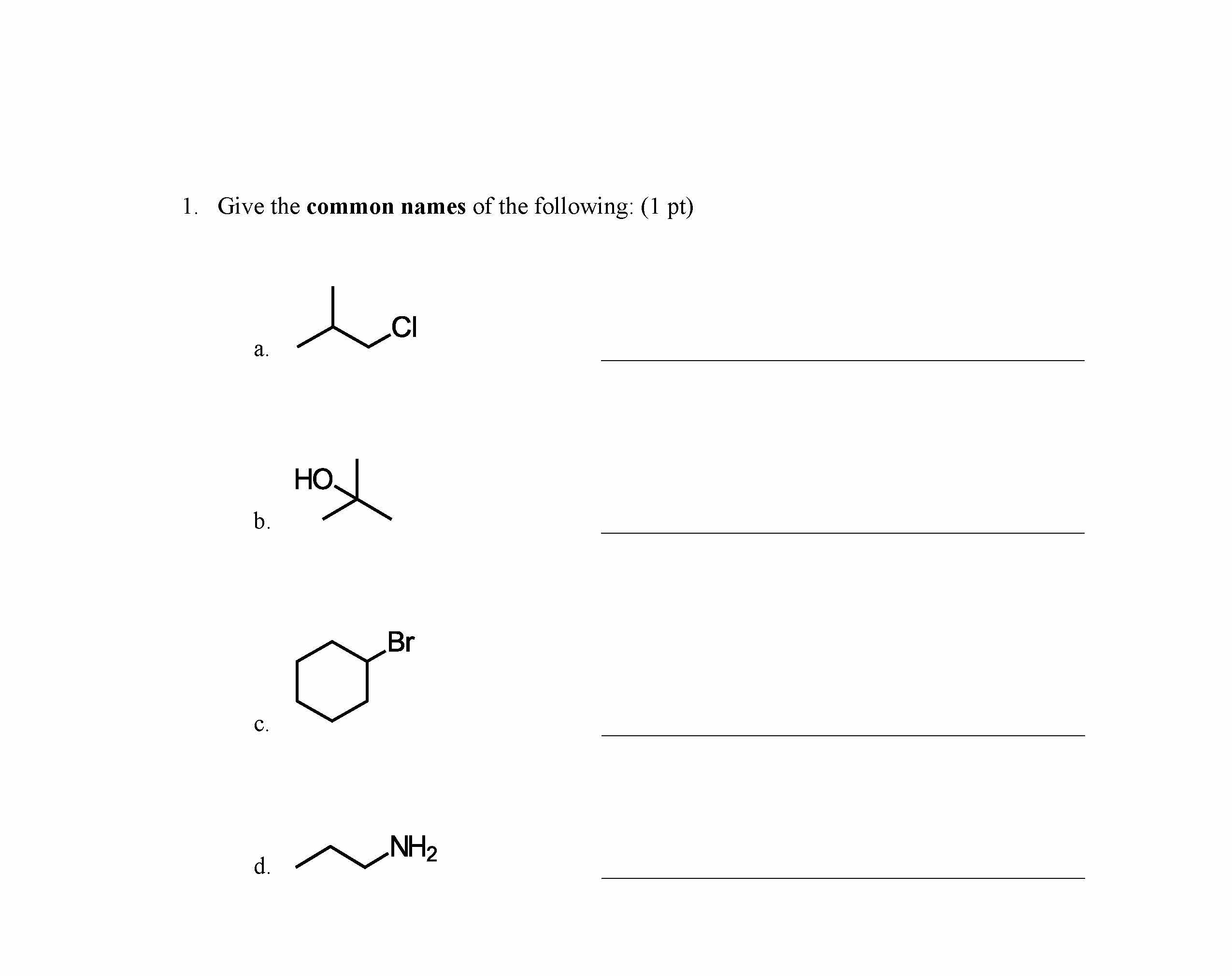 1. Give the common names of the following: (1 pt) a. ...