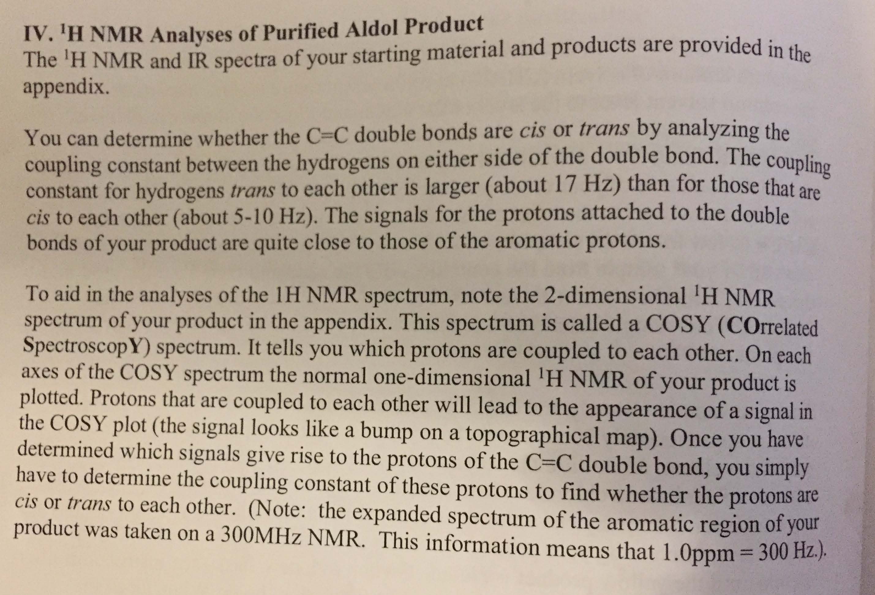 IV. 1H NMR Analyses of Purified Aldol Product The 'H NMR and IR sp...