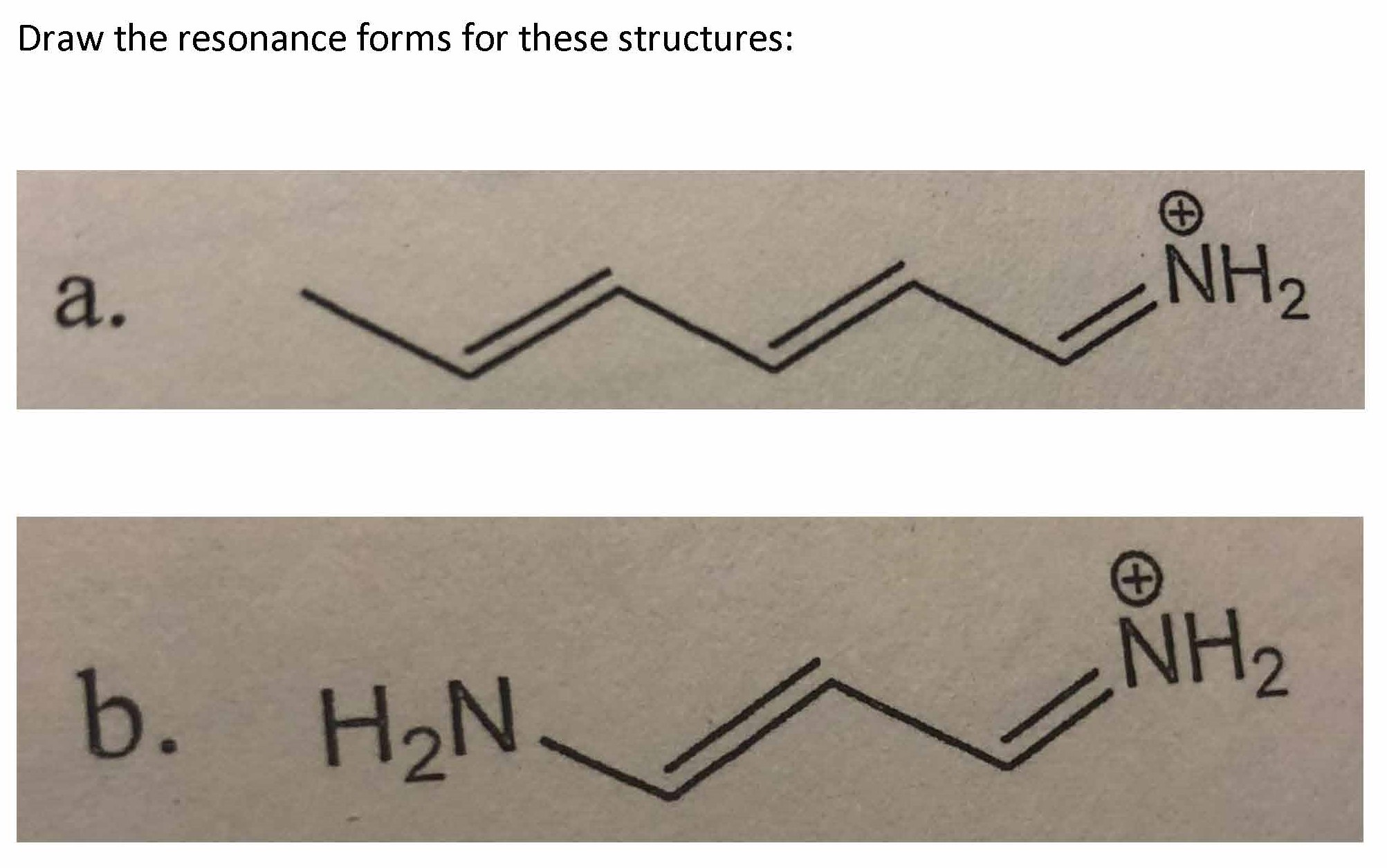 Draw the resonance forms for these structures: + NH2 a. NH2 b....