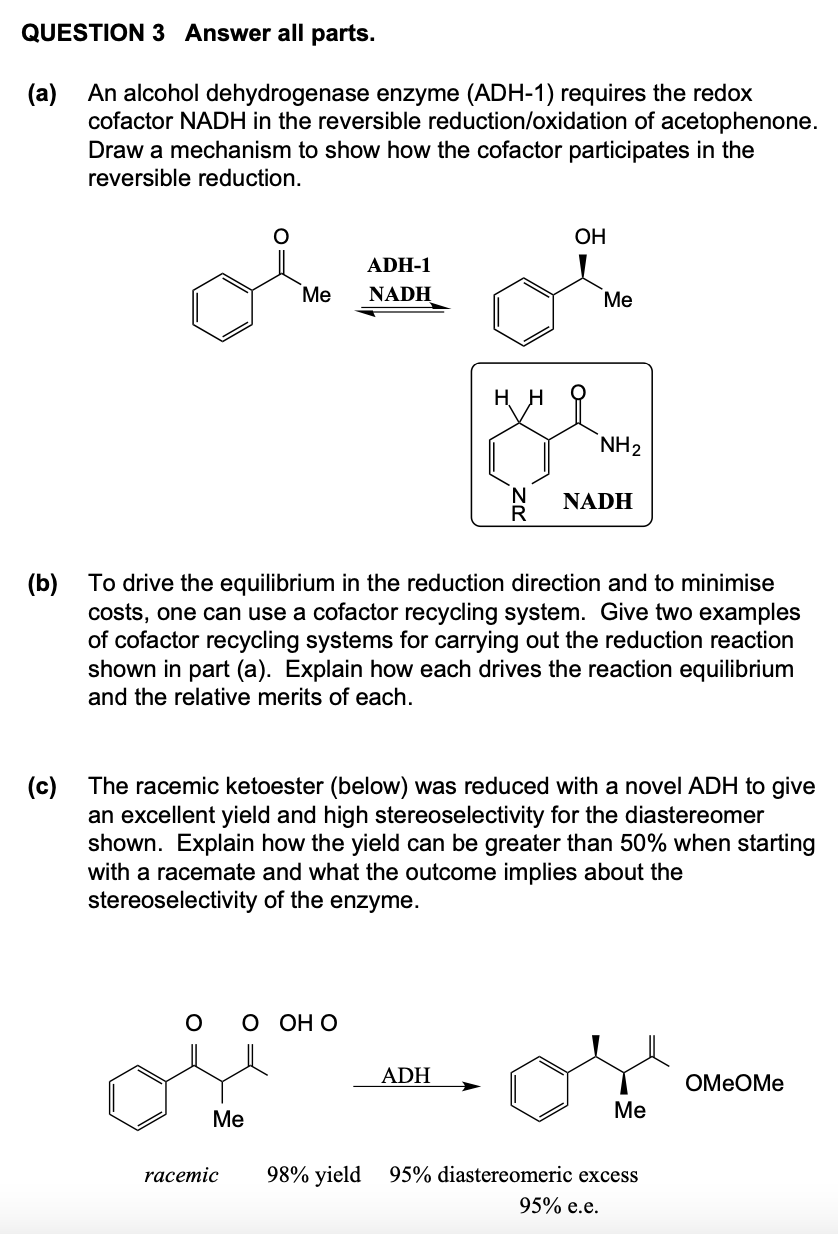 QUESTION 3 Answer all parts. (a) An alcohol dehydrogenase enzyme (...