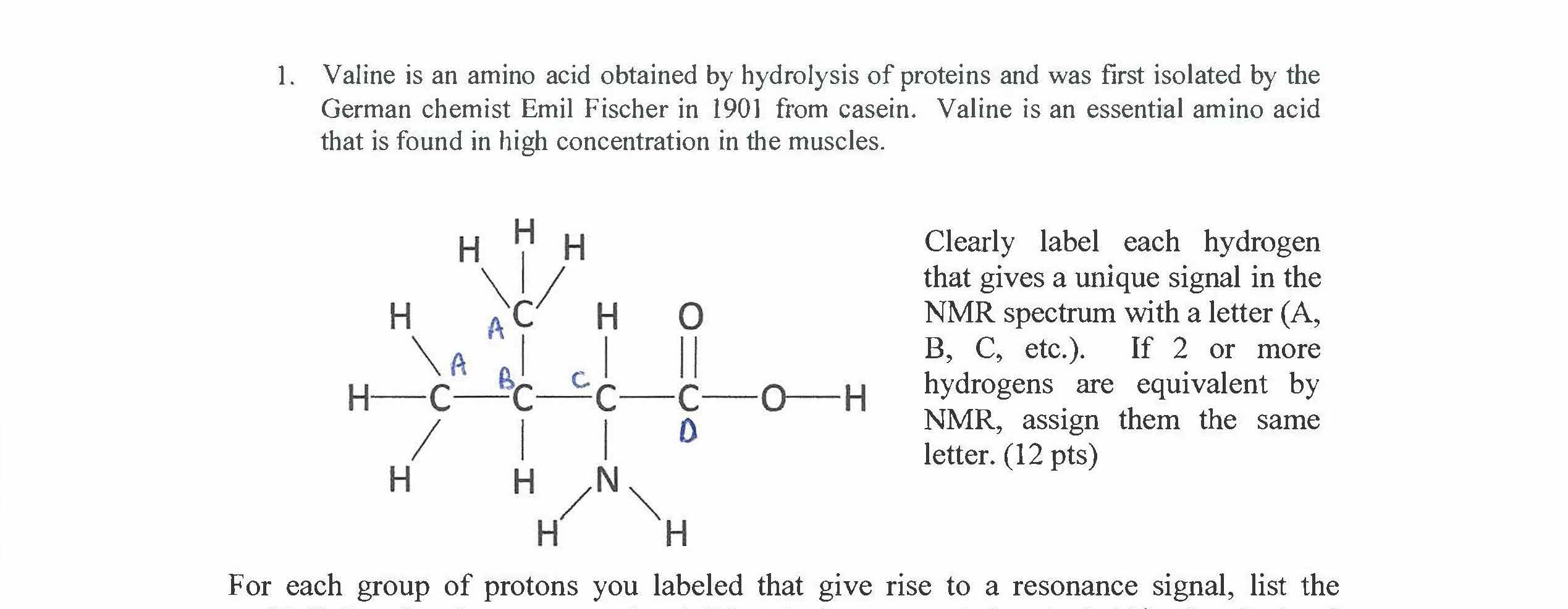 1. Valine is an amino acid obtained by hydrolysis of proteins and w...