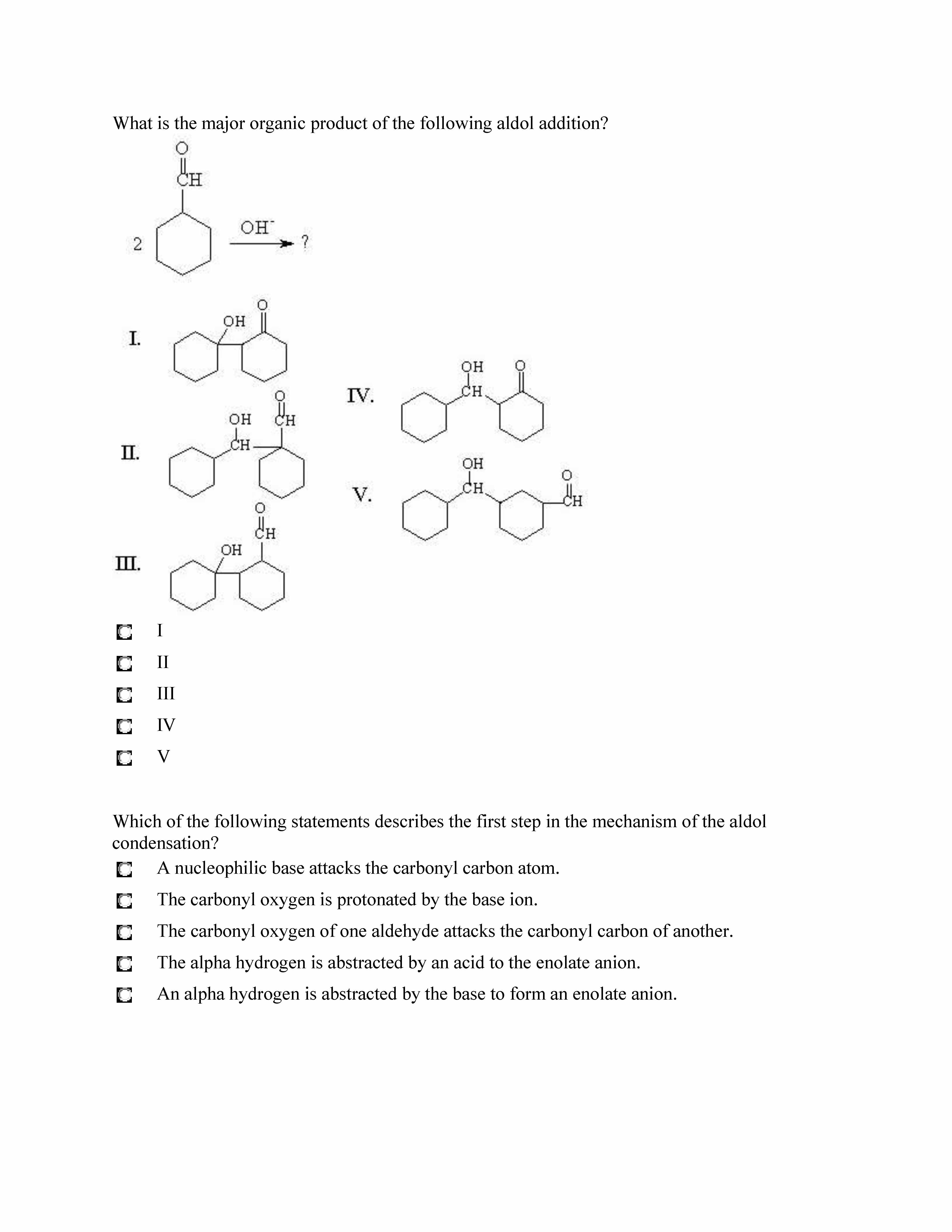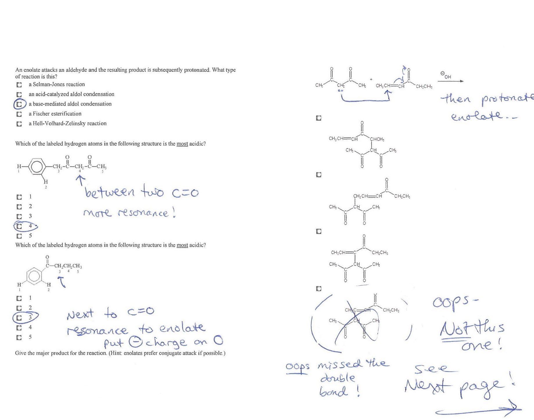 An enolate attacks an aldehyde and the resulting product is subsequ...