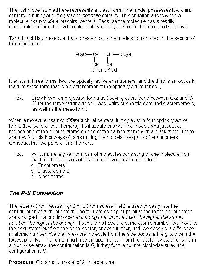 Stereoisomerism: A Model Exercise In this experiment you will cons...