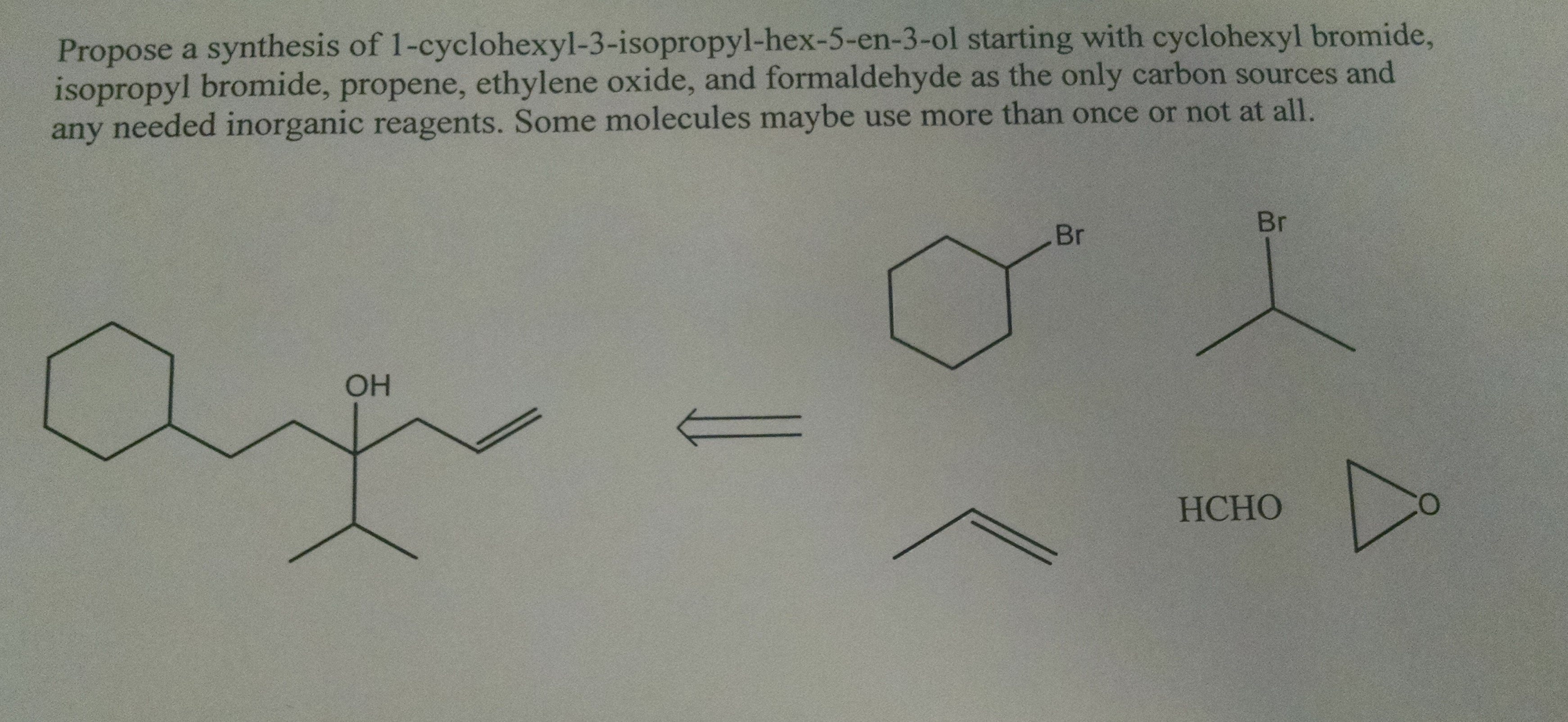 Propose a synthesis of 1-cyclohexyl-3-isopropyl-hex-5-en-3-ol start...