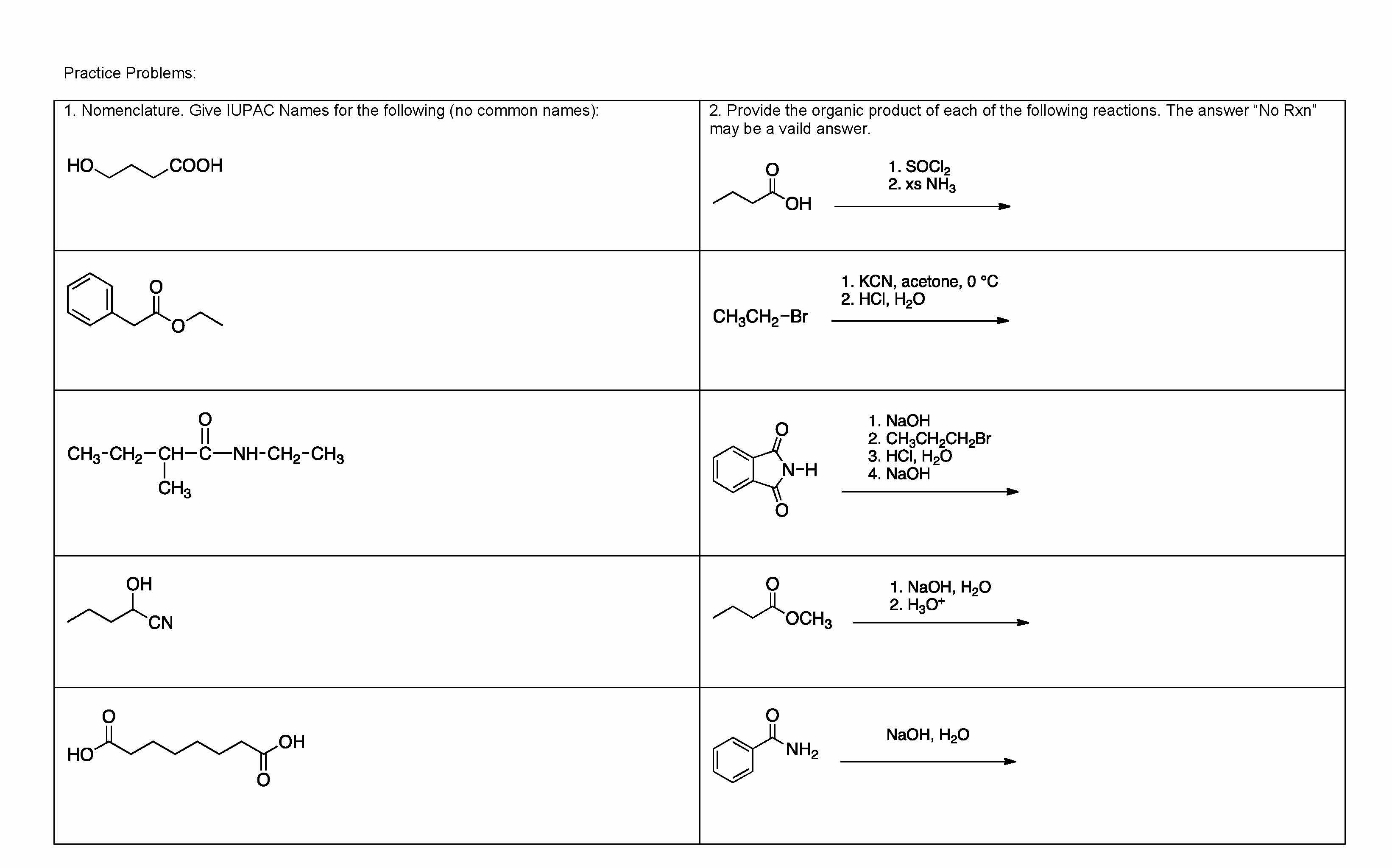 Practice Problems: 1. Nomenclature. Give IUPAC Names for the fol...