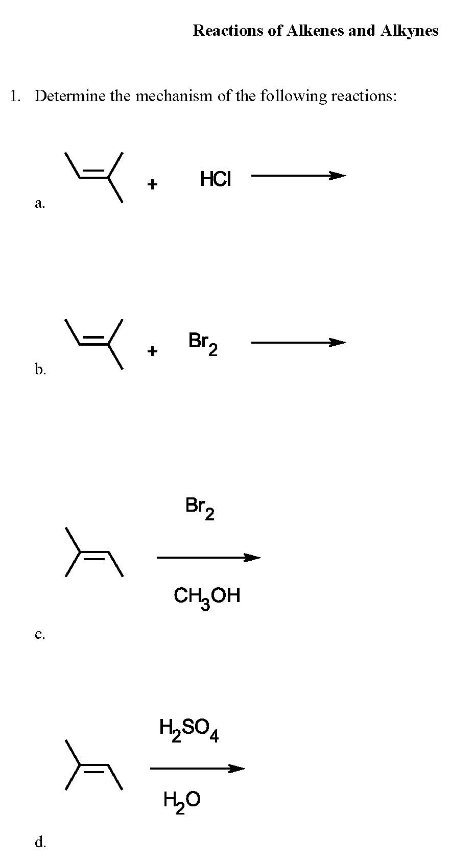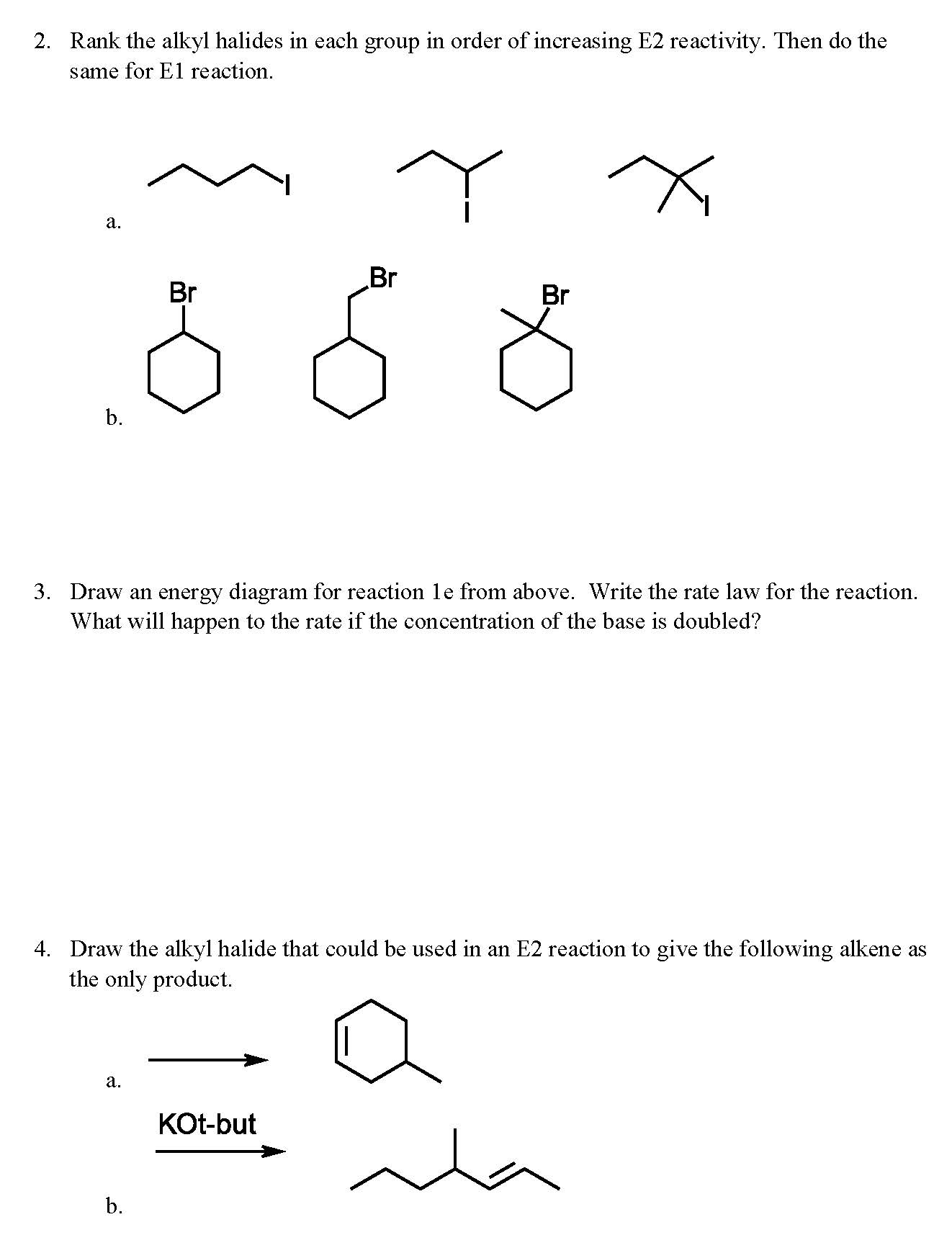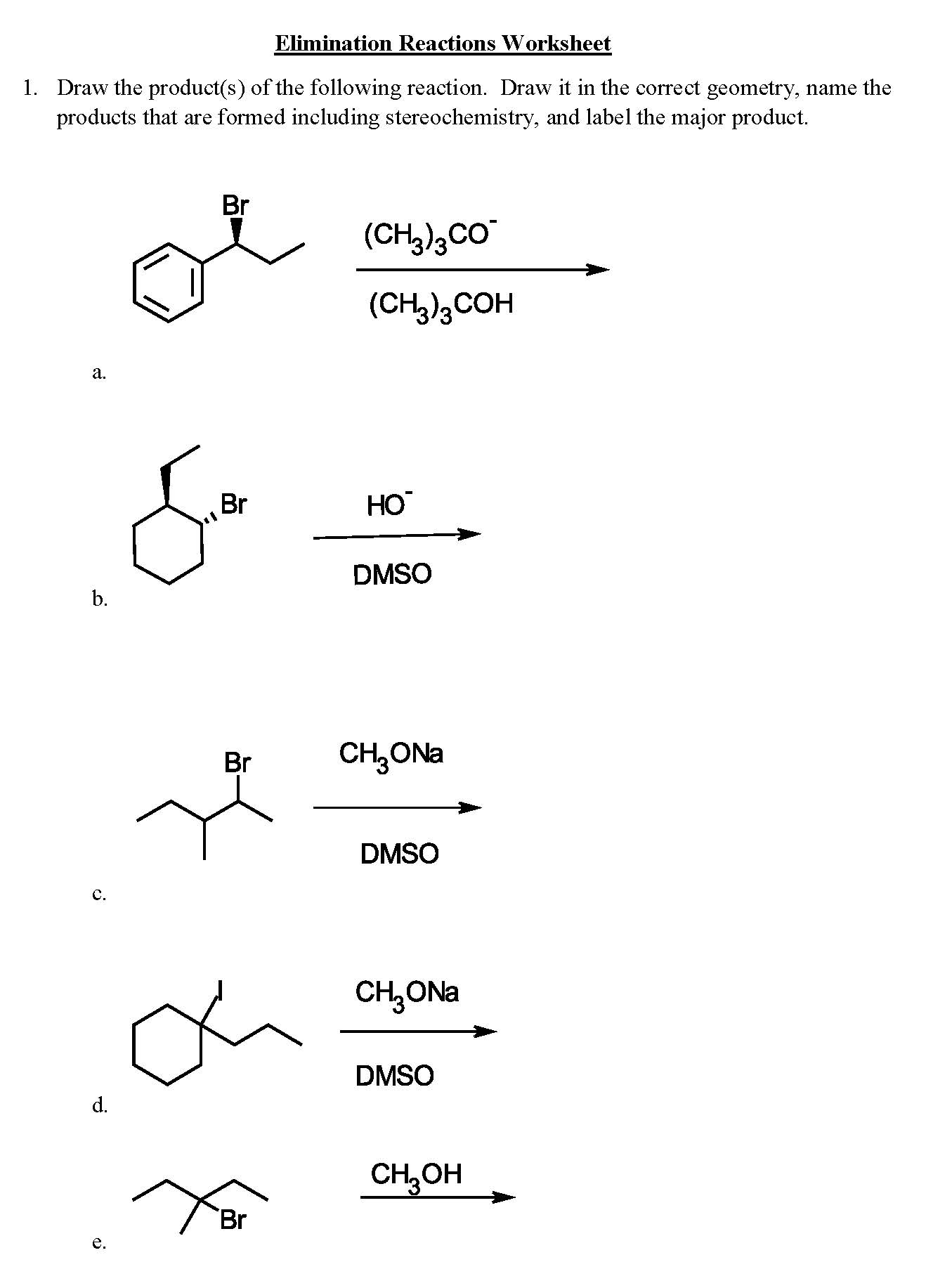 Elimination Reactions Worksheet 1. Draw the product(s) of the foll...