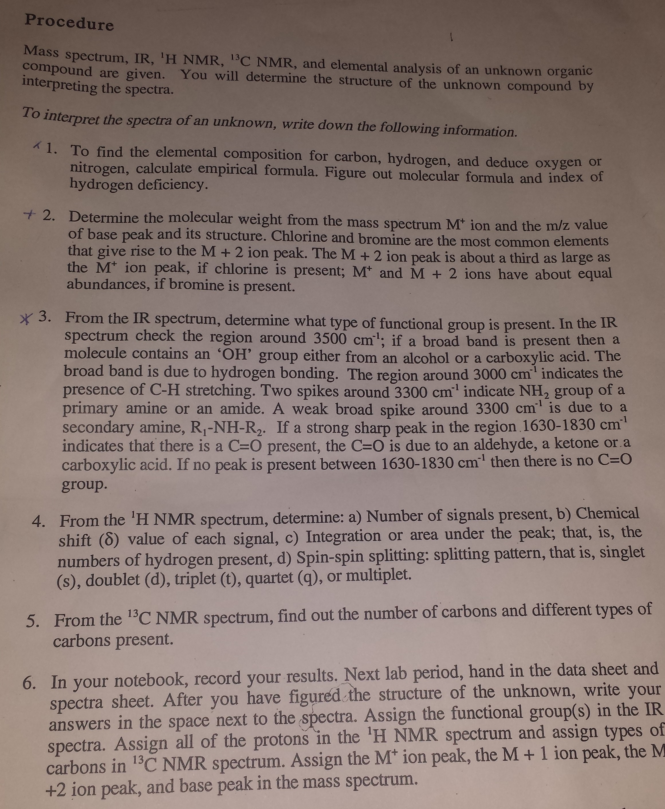 Procedure interpreting are the spectra. given. You will determine...