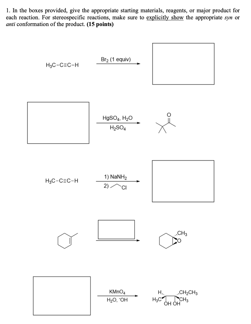 1. In the boxes provided, give the appropriate starting materials,...