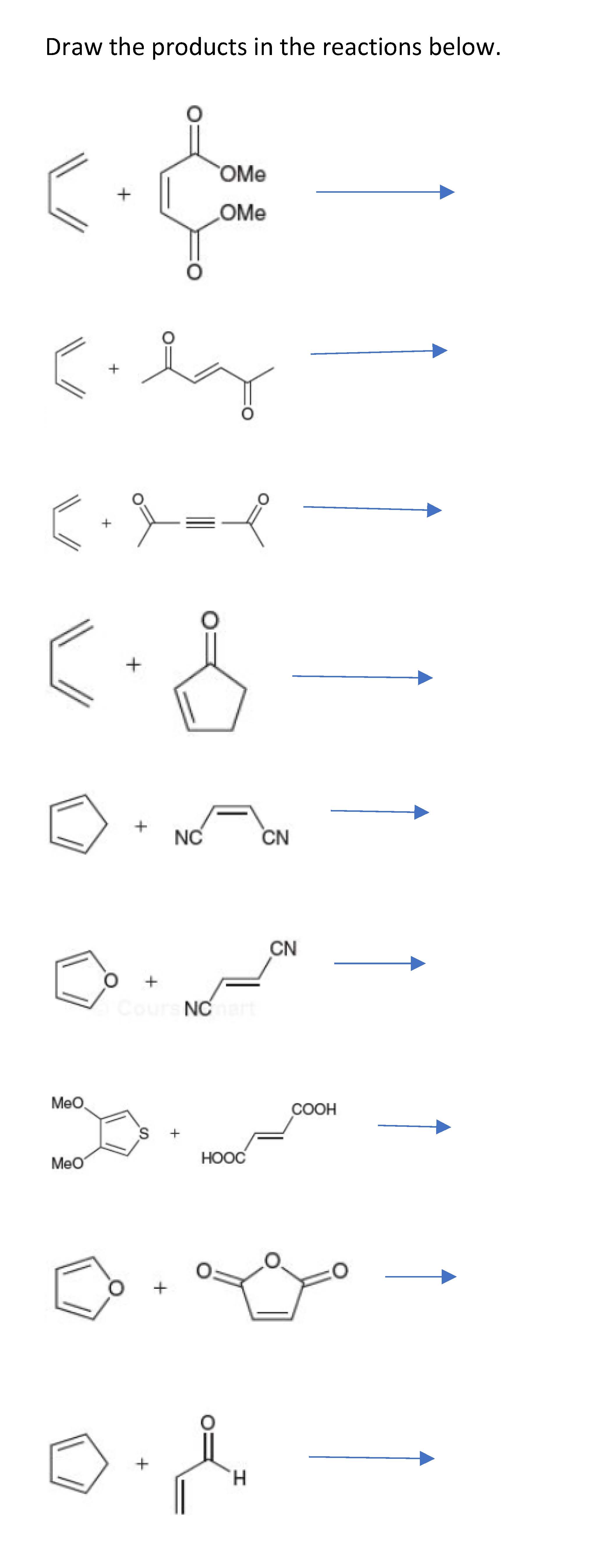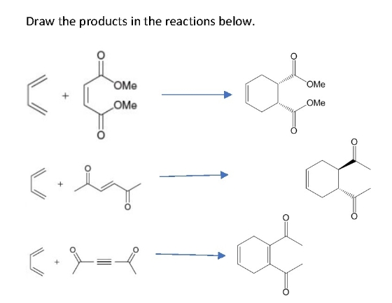 Draw the products in the reactions below. o OMe + OMe o o + ...