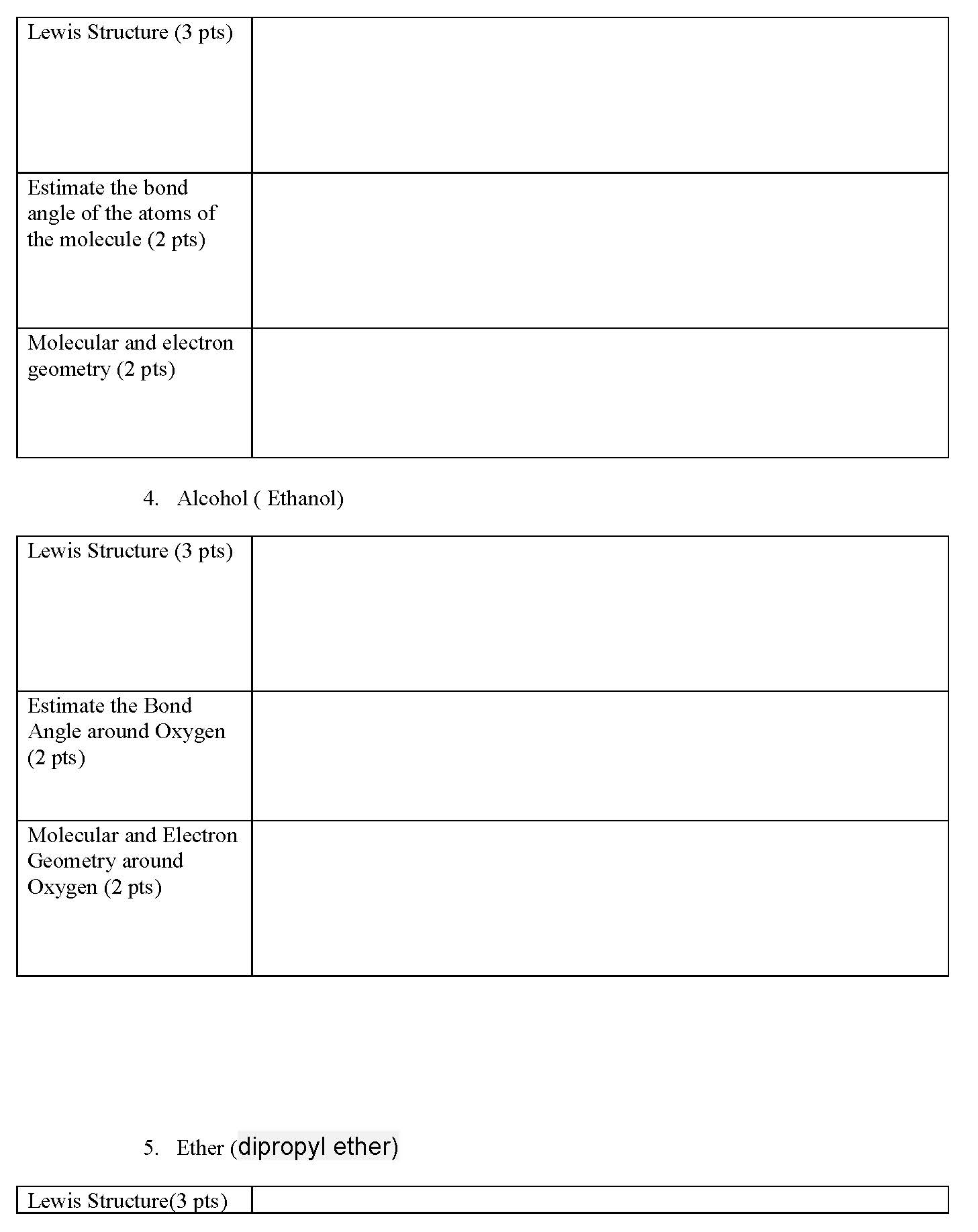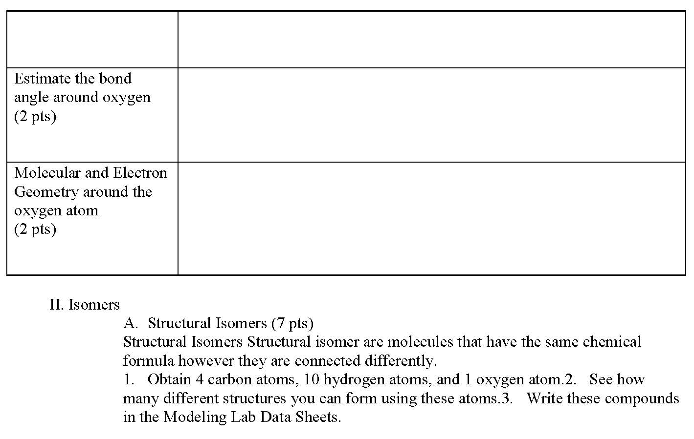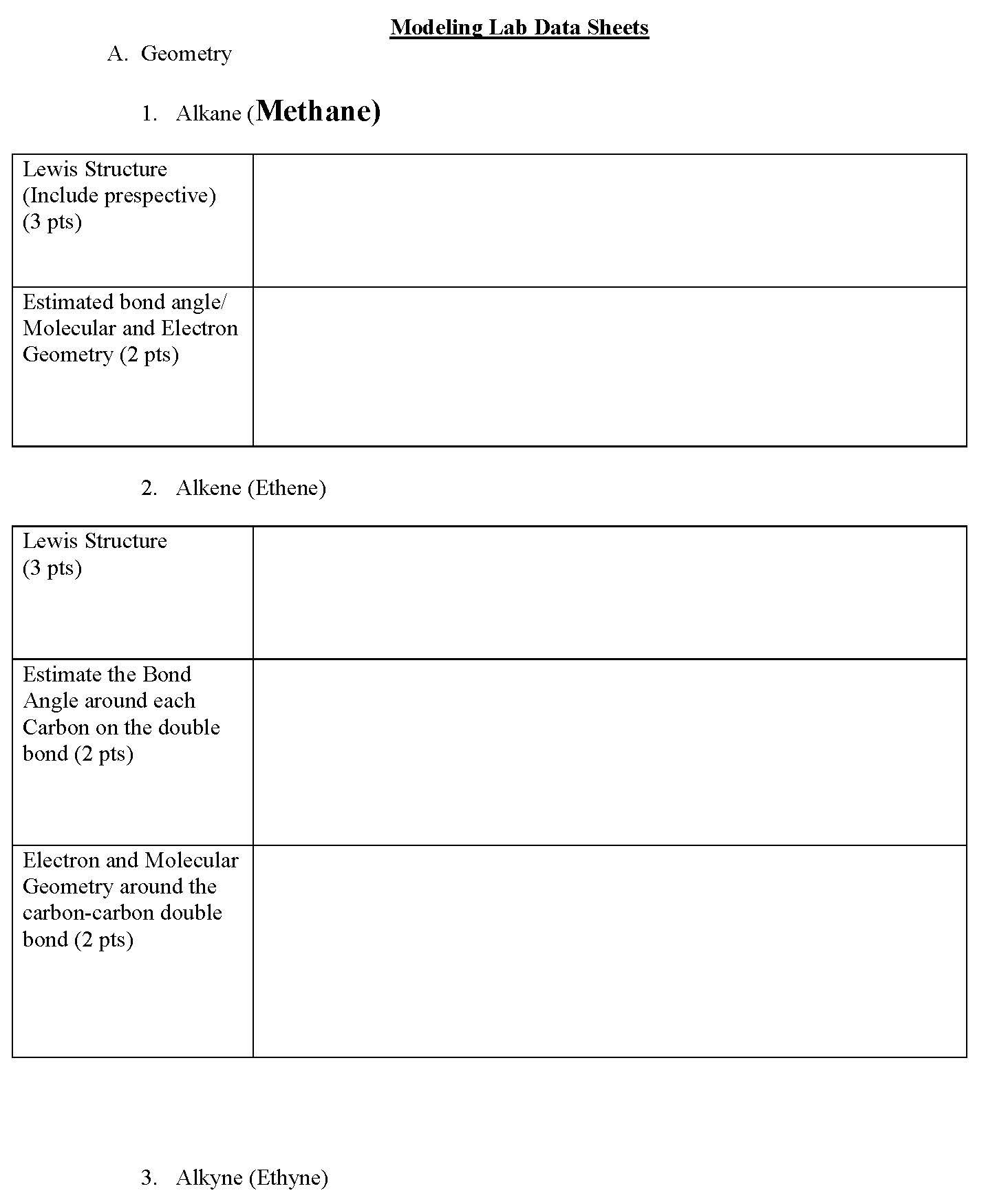 Modeling Lab Data Sheets A. Geometry 1. Alkane (Methane) Lew...