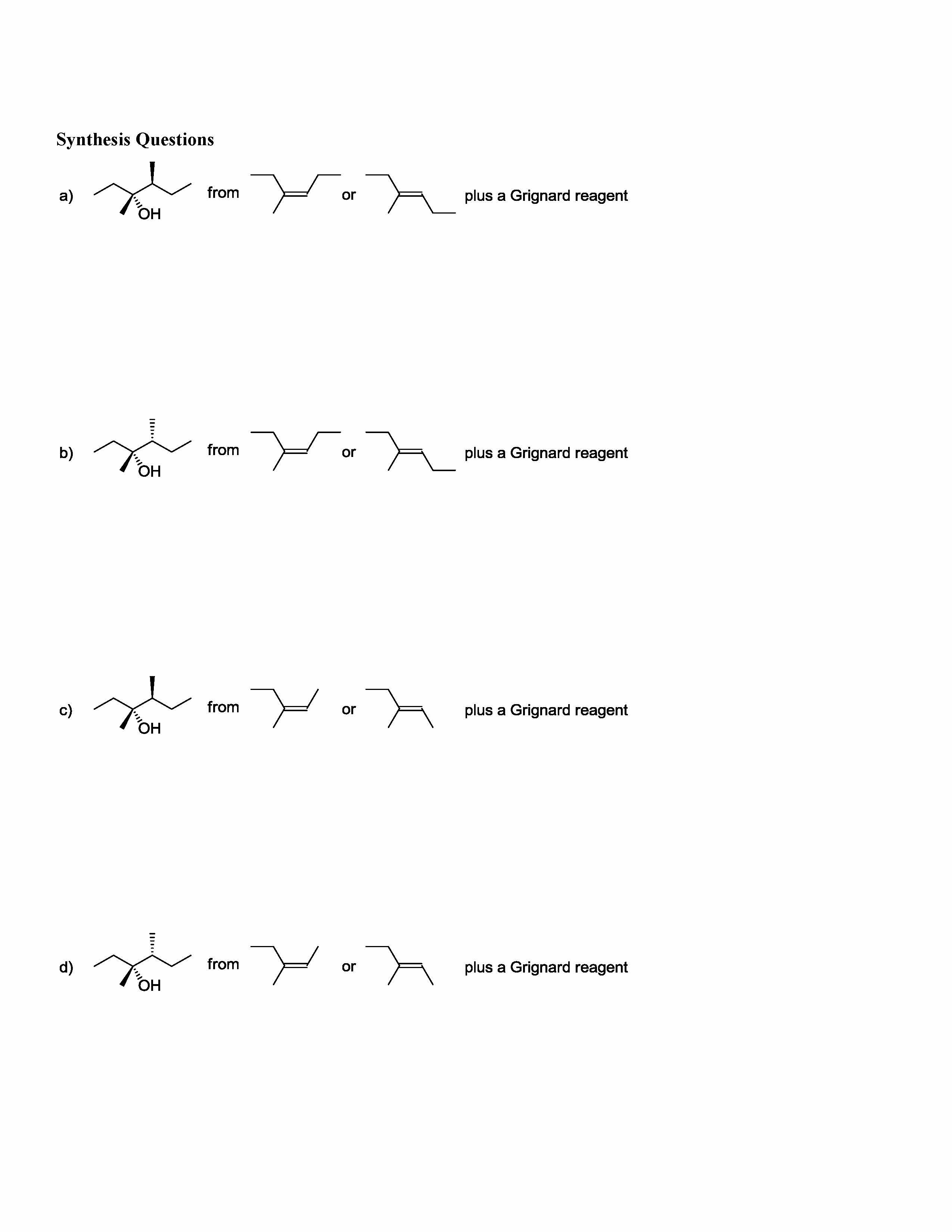 Synthesis Questions a) " from or plus Grignard a reagent ...