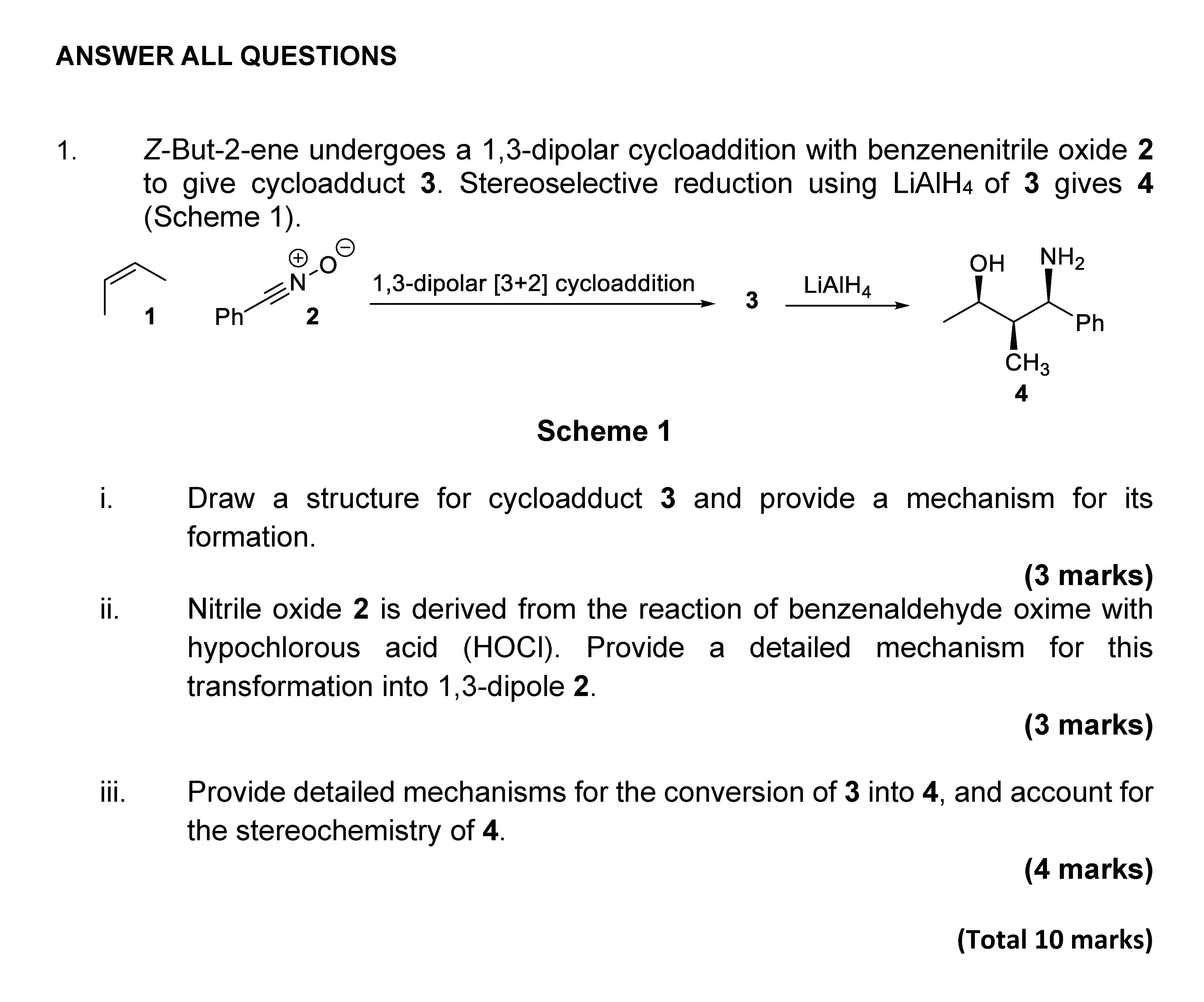 ANSWER ALL QUESTIONS 1. Z-But-2-ene undergoes a 1,3-dipolar cycloa...