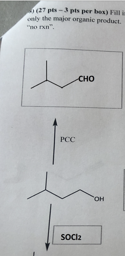 3) (27 the pts - 3 pts per box) Fill in the boxes in the reaction s...