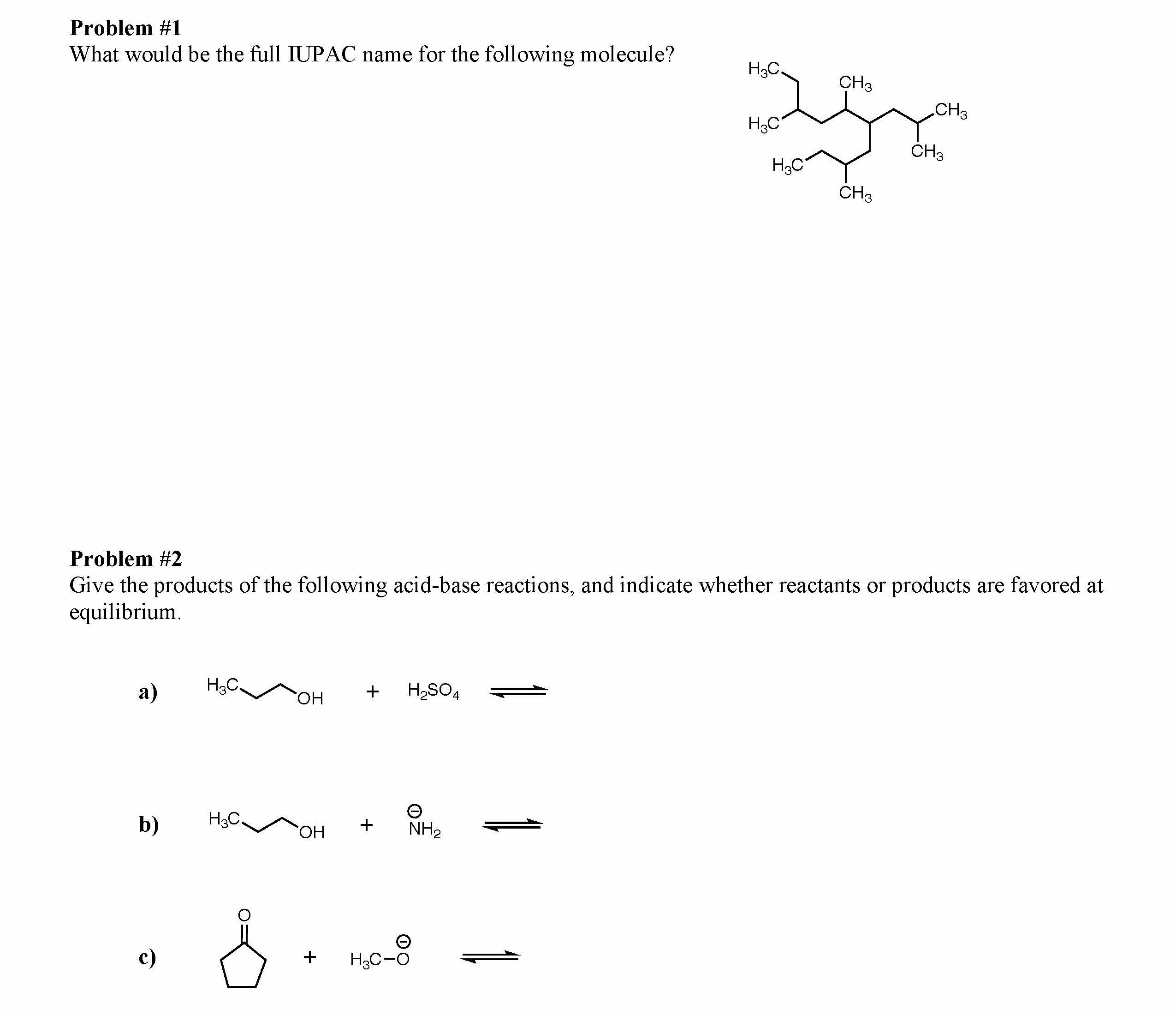 Problem #1 What would be the full IUPAC name for the following mol...