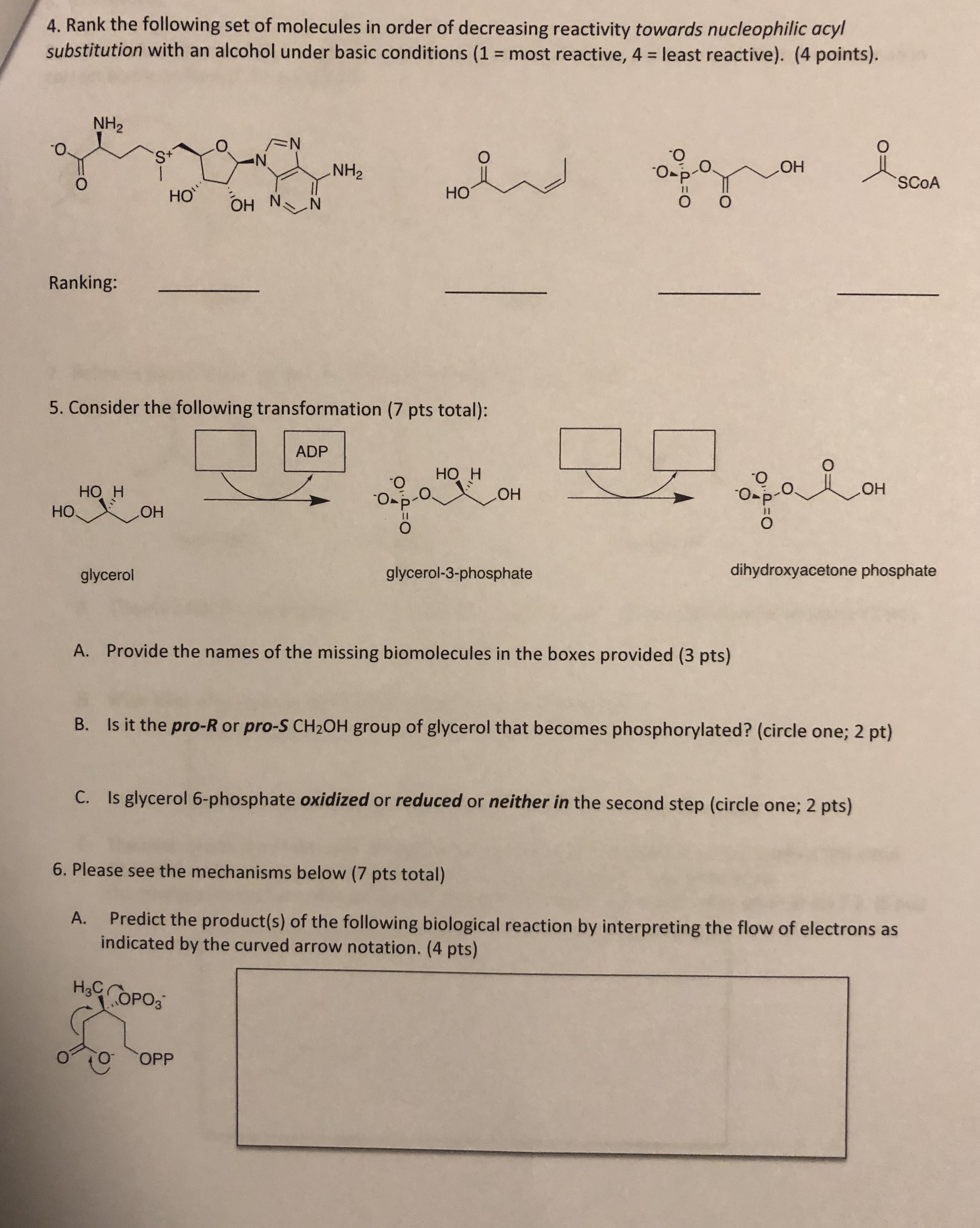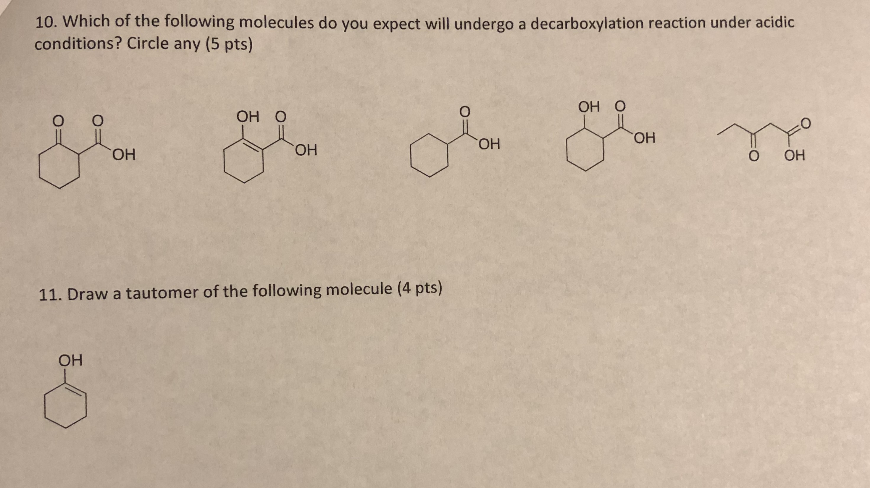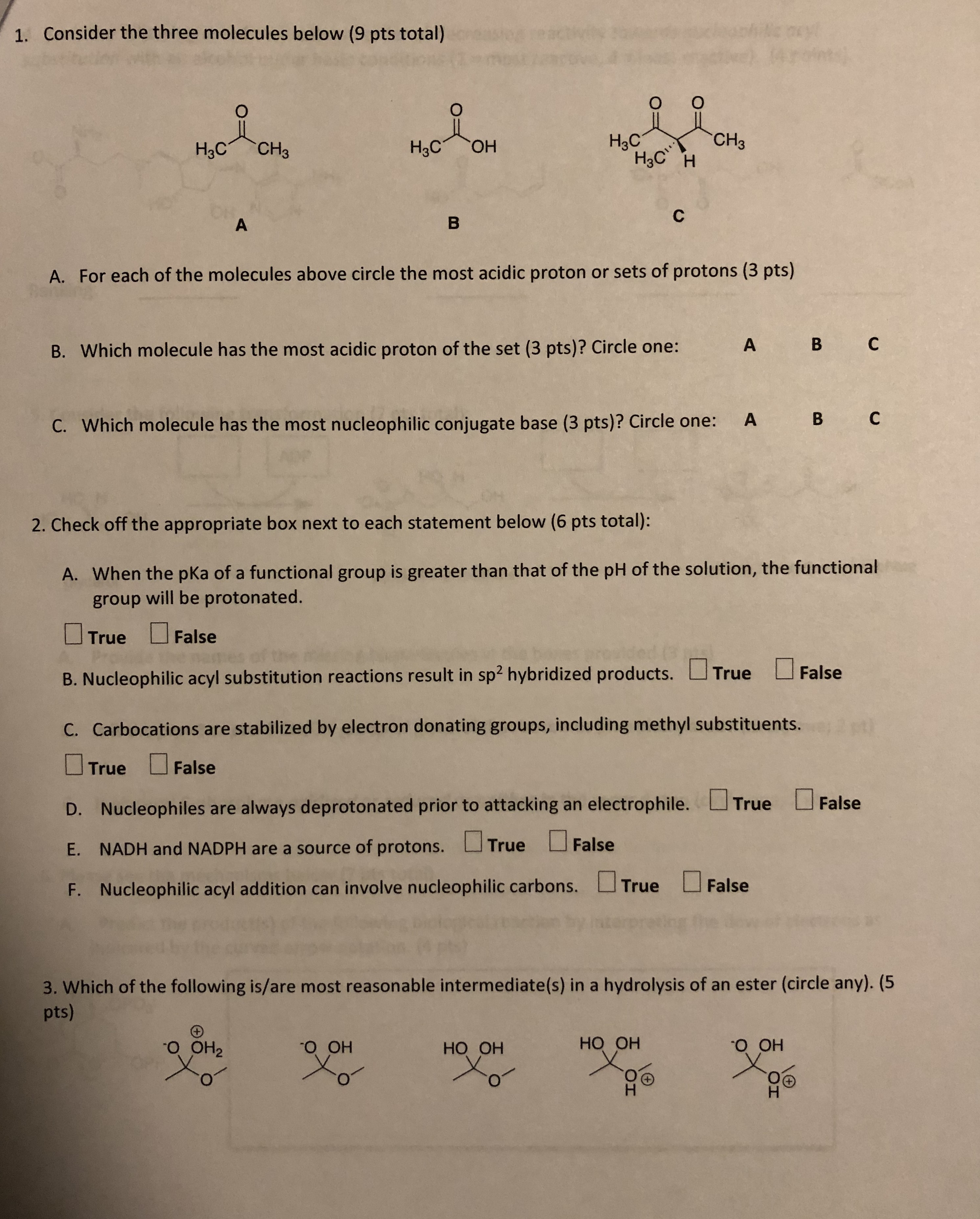 1. Consider the three molecules below (9 pts total) O O O O H3...