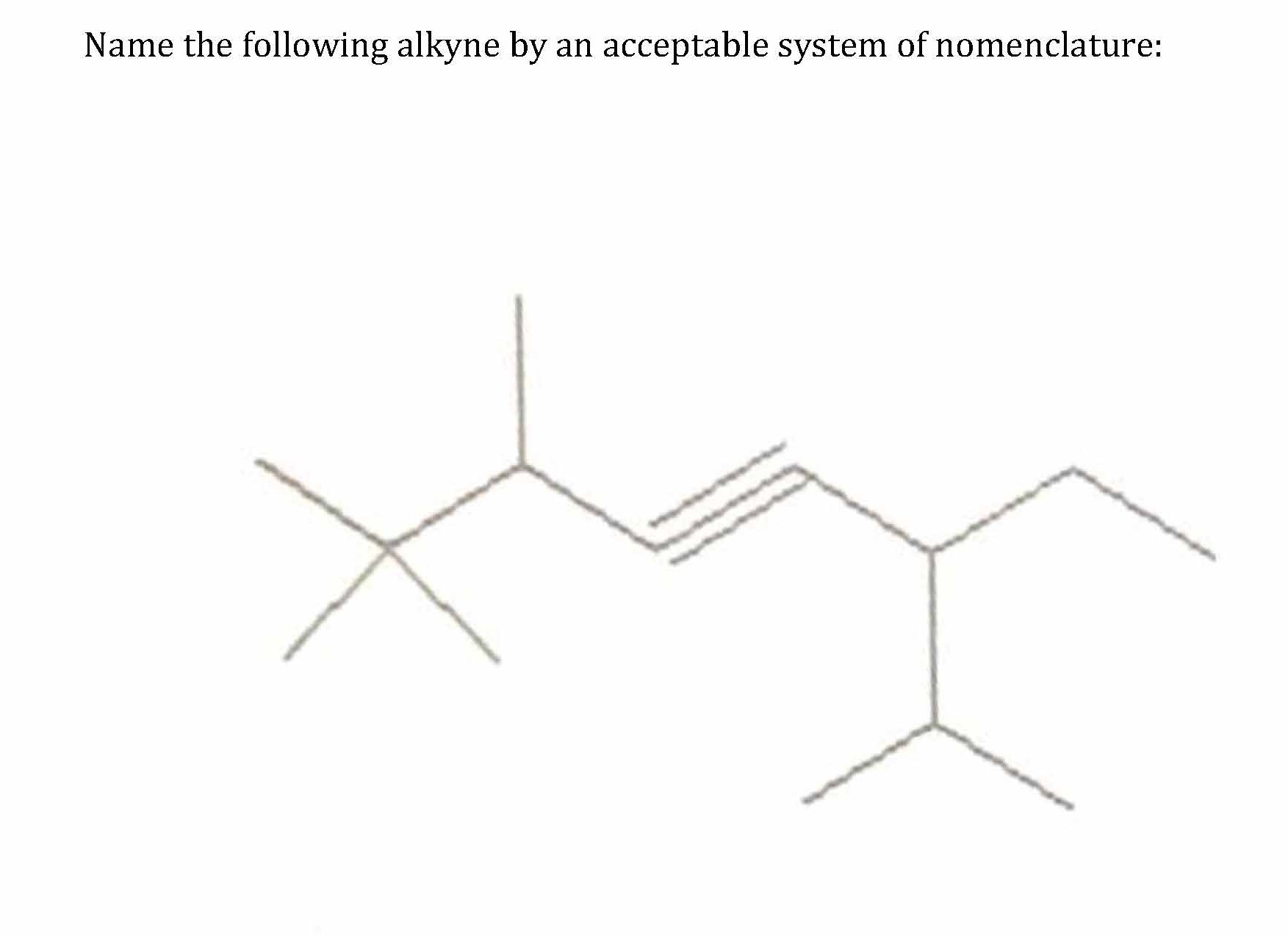 Name the following alkyne by an acceptable system of nomenclature: