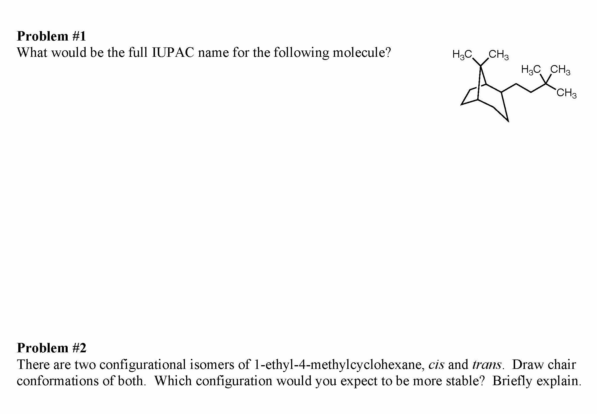 Problem #1 What would be the full IUPAC name for the following mol...