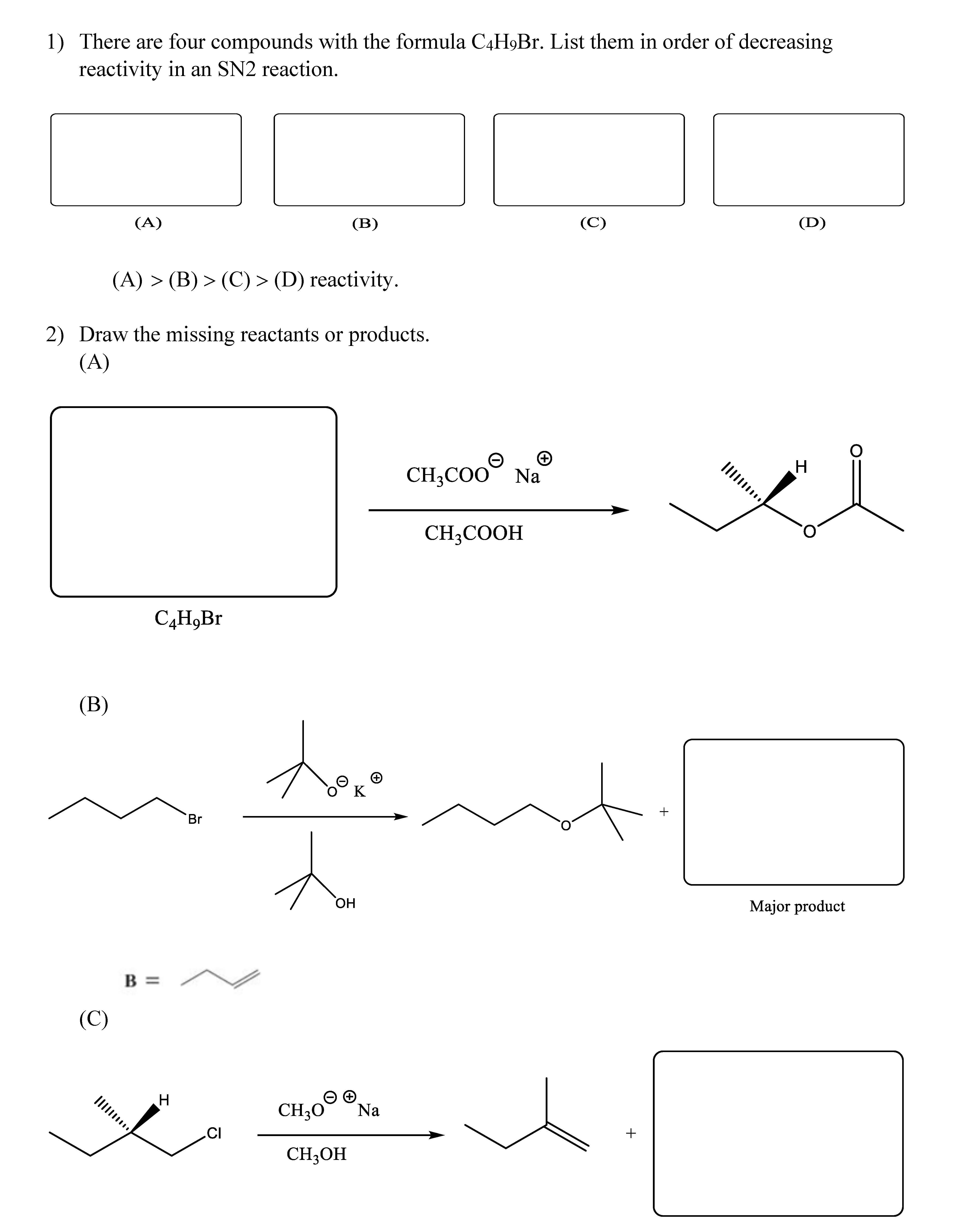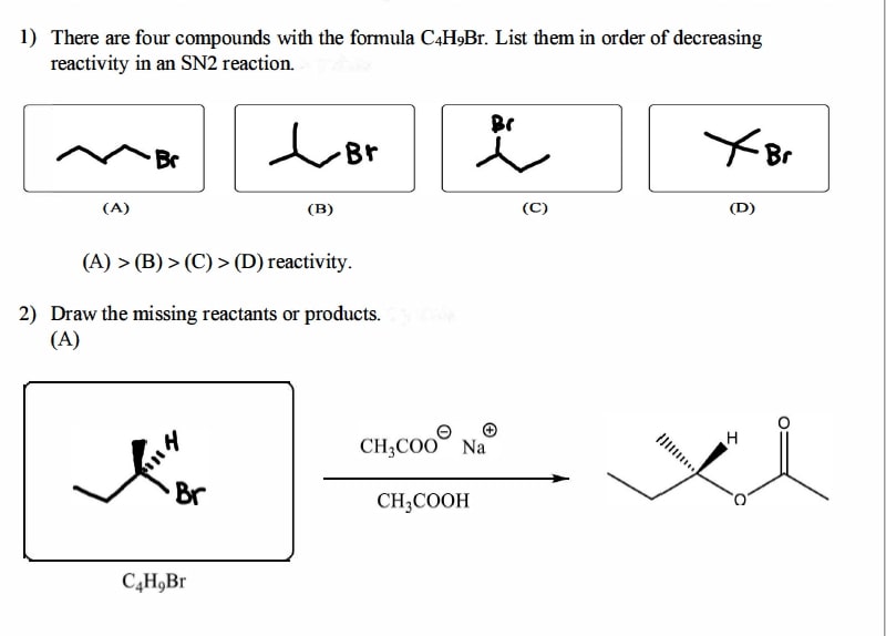 1) There are four compounds with the formula C4H9Br. List them in o...