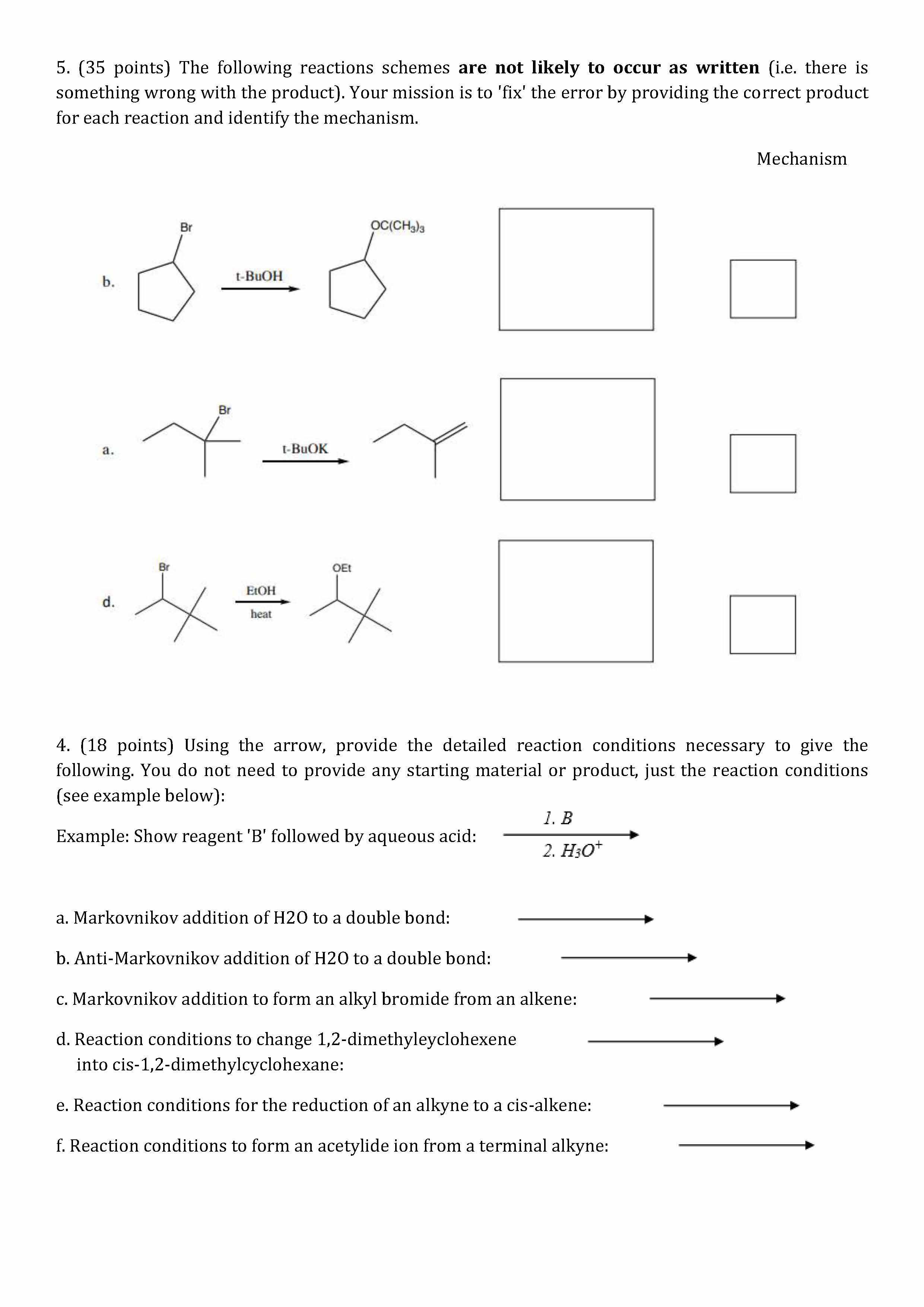5. (35 points) The following reactions schemes are not likely to oc...