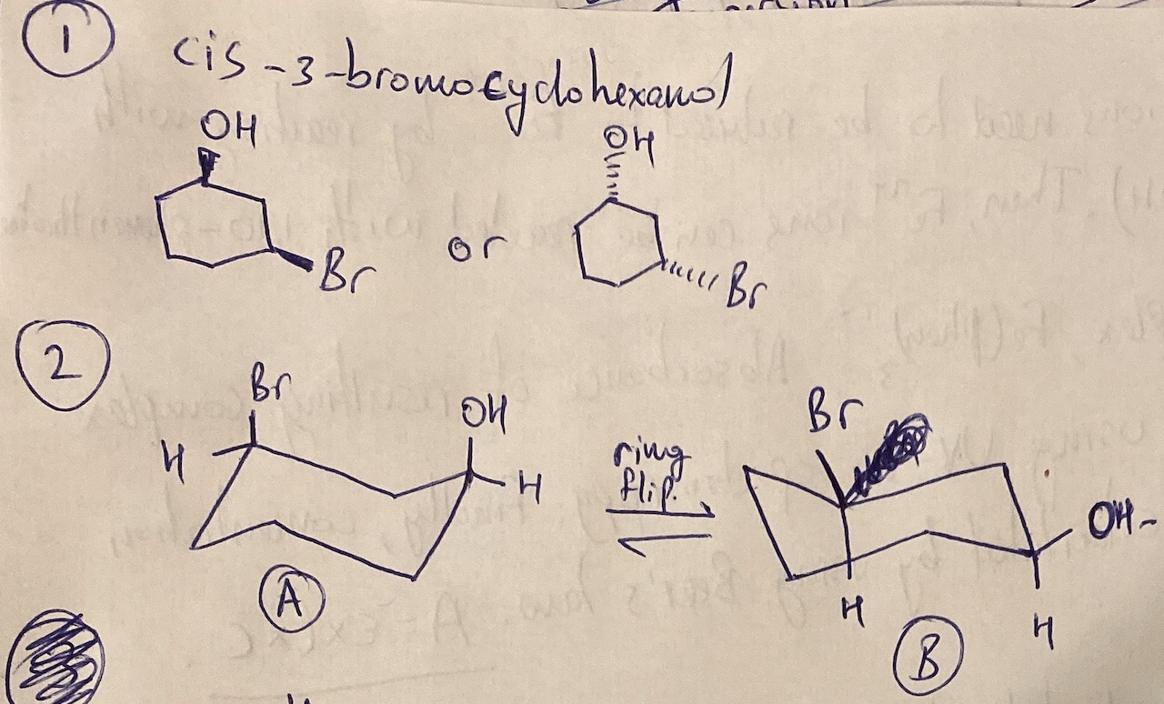 Consider cis 1-bromo-3-hydroxycyclohexane 1. Draw the 2-dimension...