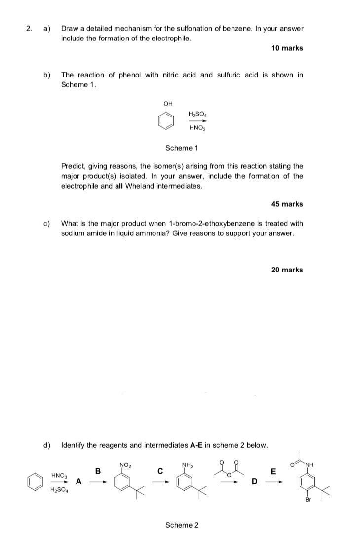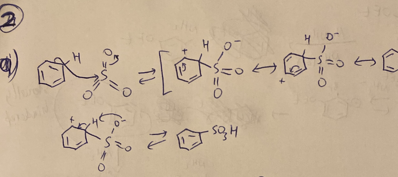 2. a) Draw a detailed mechanism for the sulfonation of benzene. I...