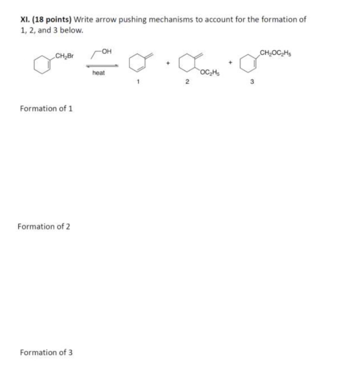 XI. (18 points) Write arrow pushing mechanisms to account for the f...