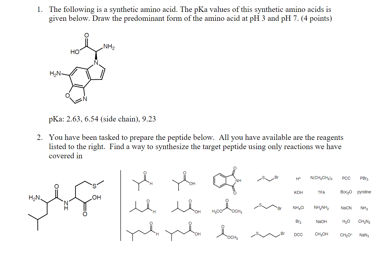 1. The following is a synthetic amino acid. The pKa values of this ...