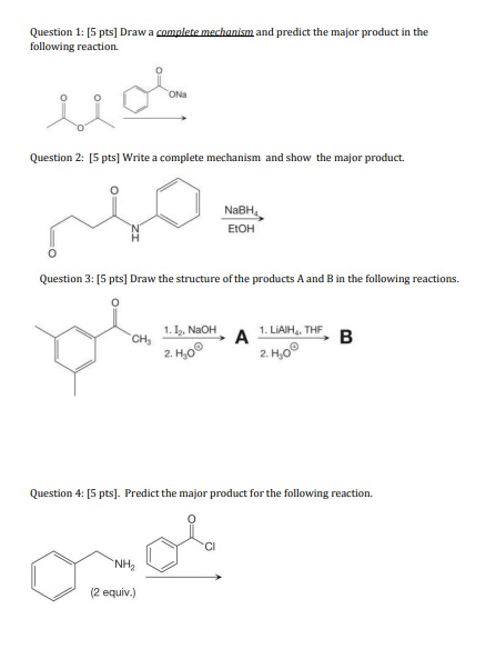 Question 1: [5 pts] Draw a complete mechanism and predict the major...