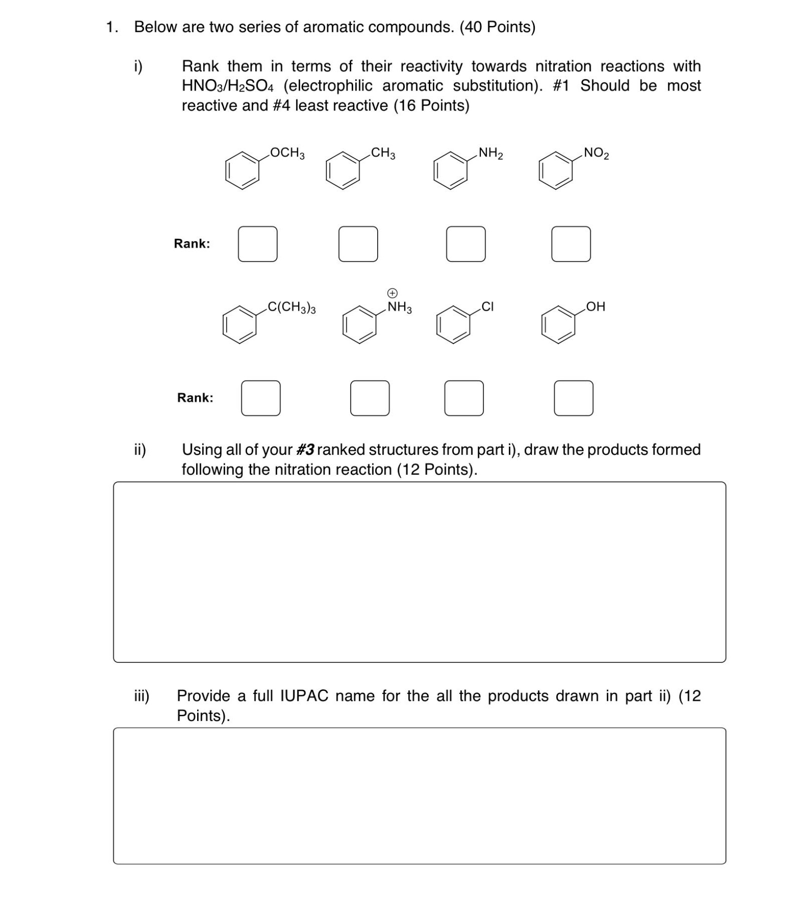 1. Below are two series of aromatic compounds. (40 Points) i) Ran...