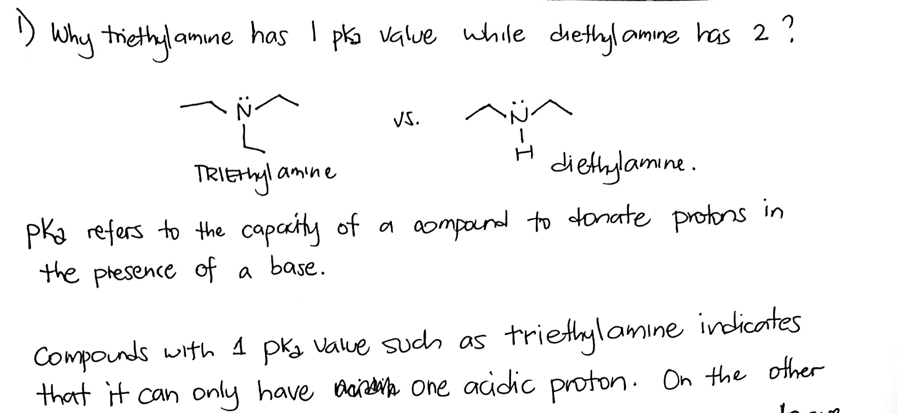 1) Why triethylamine has only 1 pKa value but diethylamine has 2 pK...