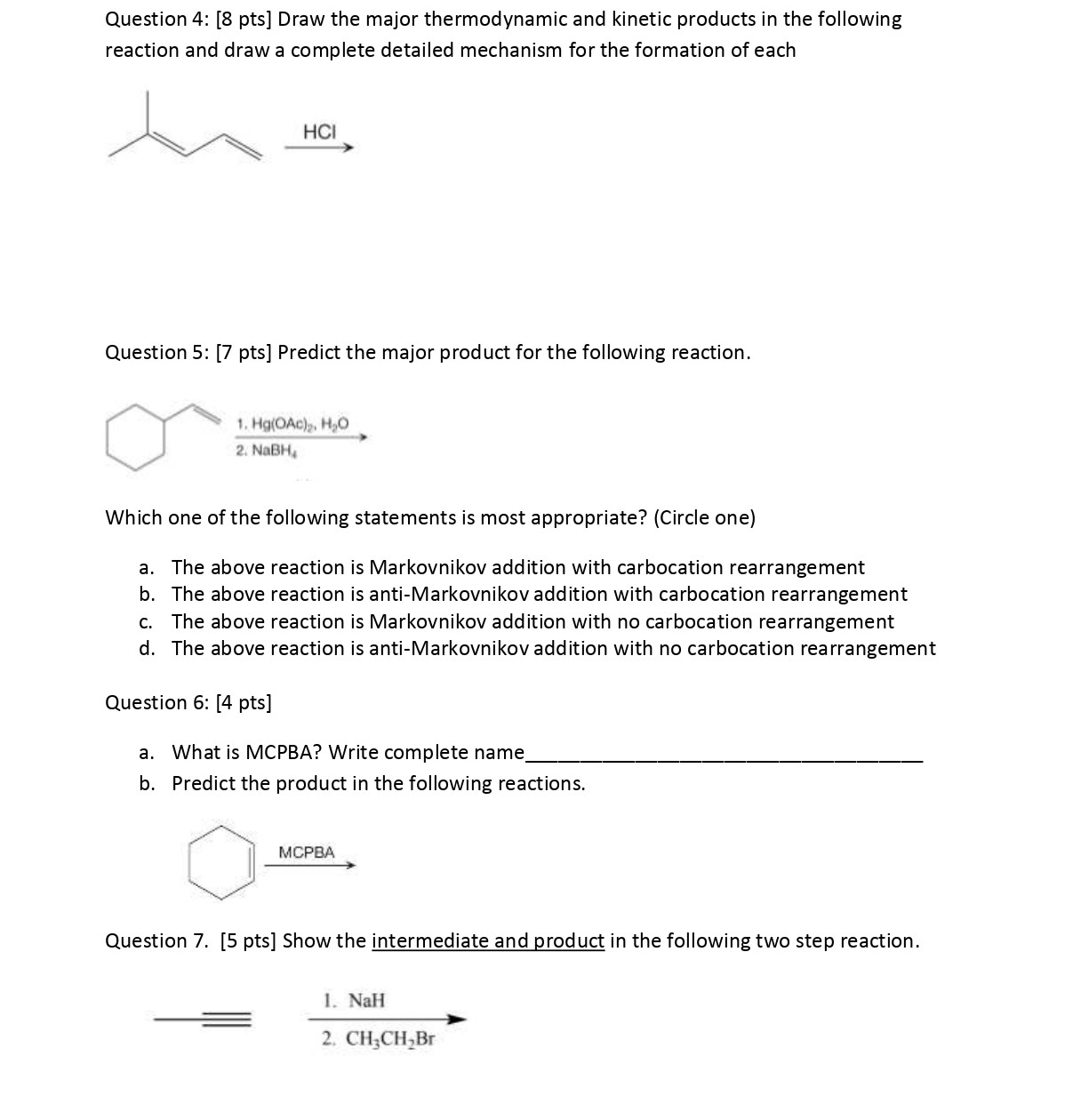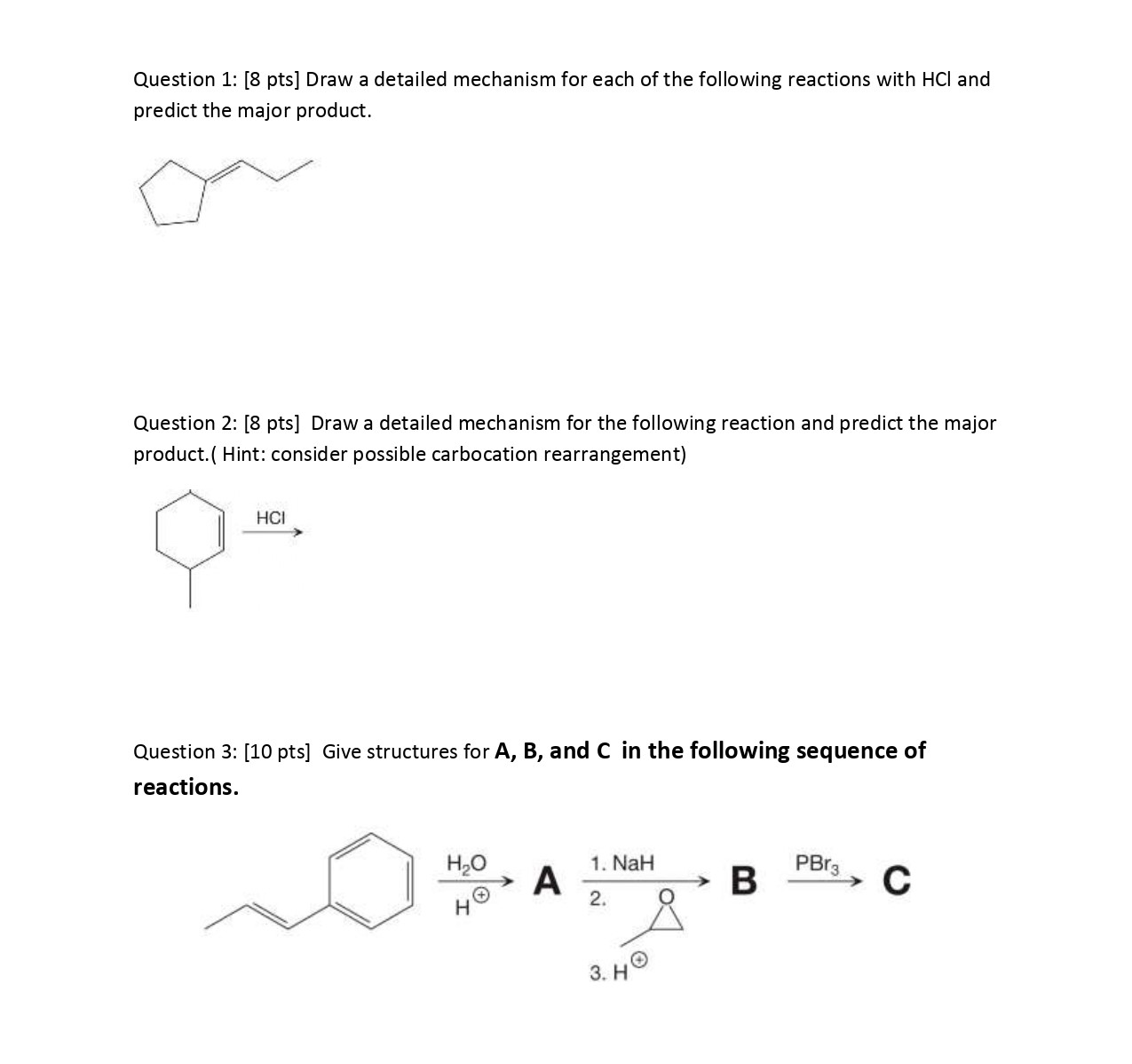 Question 1: [8 pts] Draw a detailed mechanism for each of the follo...