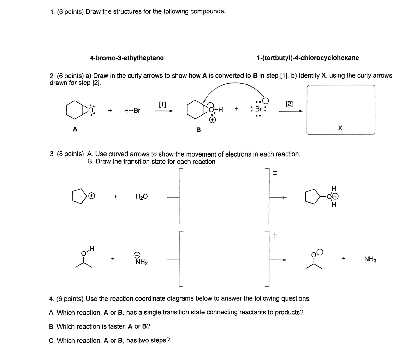 1. (6 points) Draw the structures for the following compounds. 4-b...