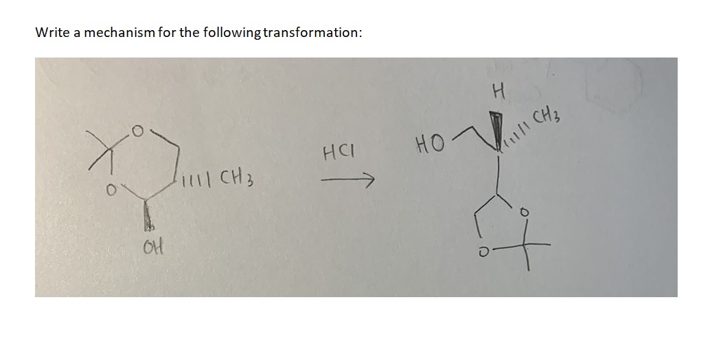 Write a mechanism for the following transformation: H CH3 HCI H...