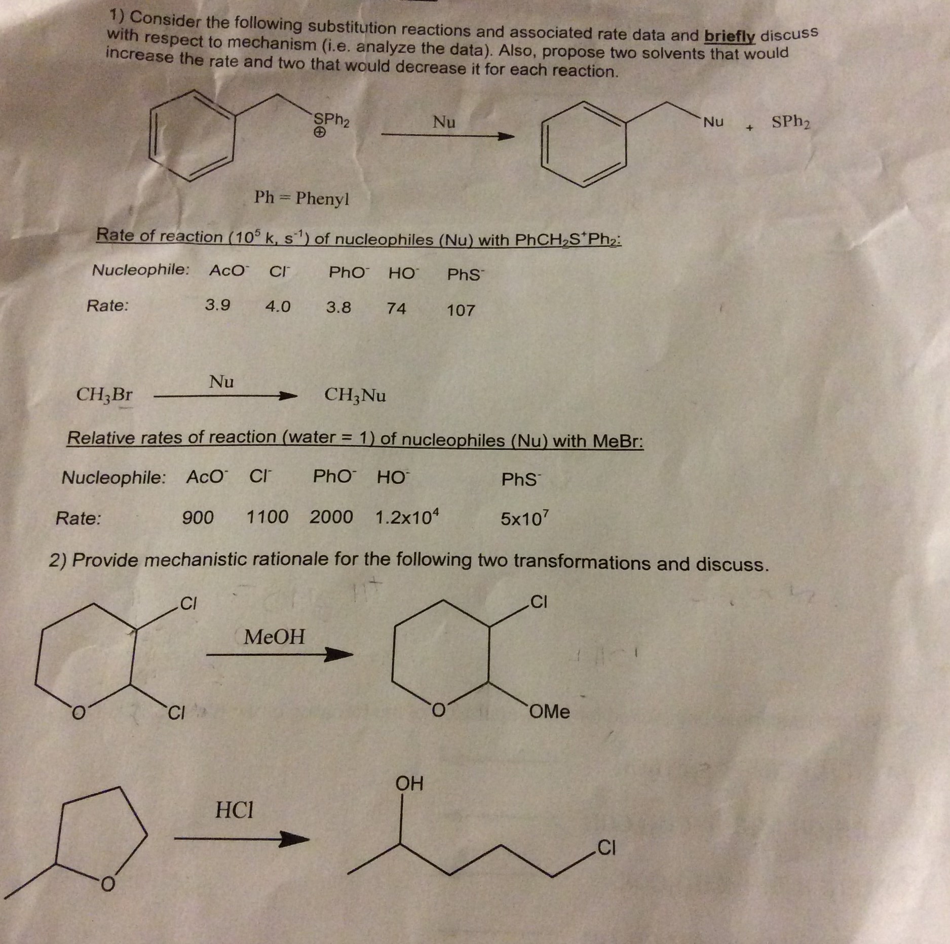 1) Consider respect the to following substitution reactions and ass...
